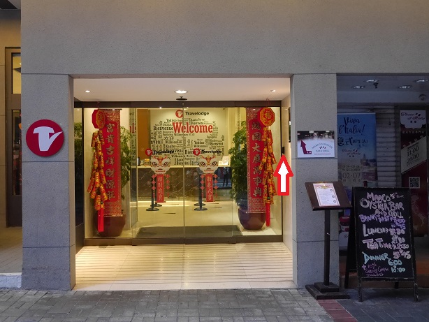 ホテル前に到着してみるも自動ドアが開かない!