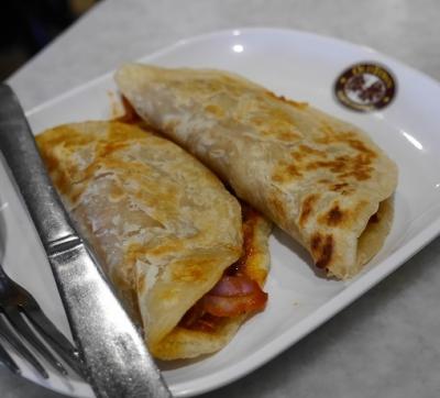カヤトーストとパラタというインドのパン生地の中にお総菜が入ったものをオーダー