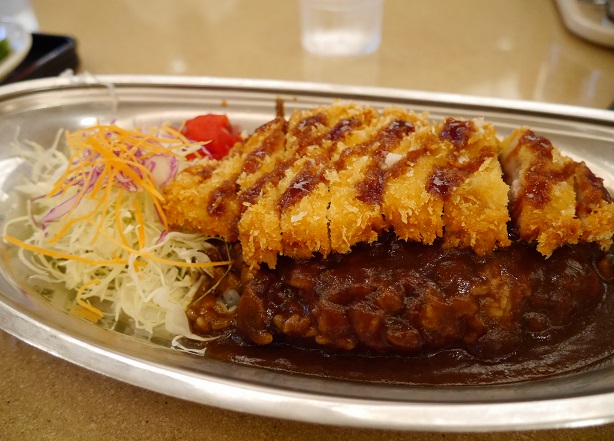 ④ルーの上にカツを載せ、その上にはソースがかかっている