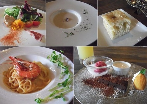 *前菜から~スタートして *ローズマリーのフォカッチャ *蕪のスープ *海老と豆苗のアメリケーノ