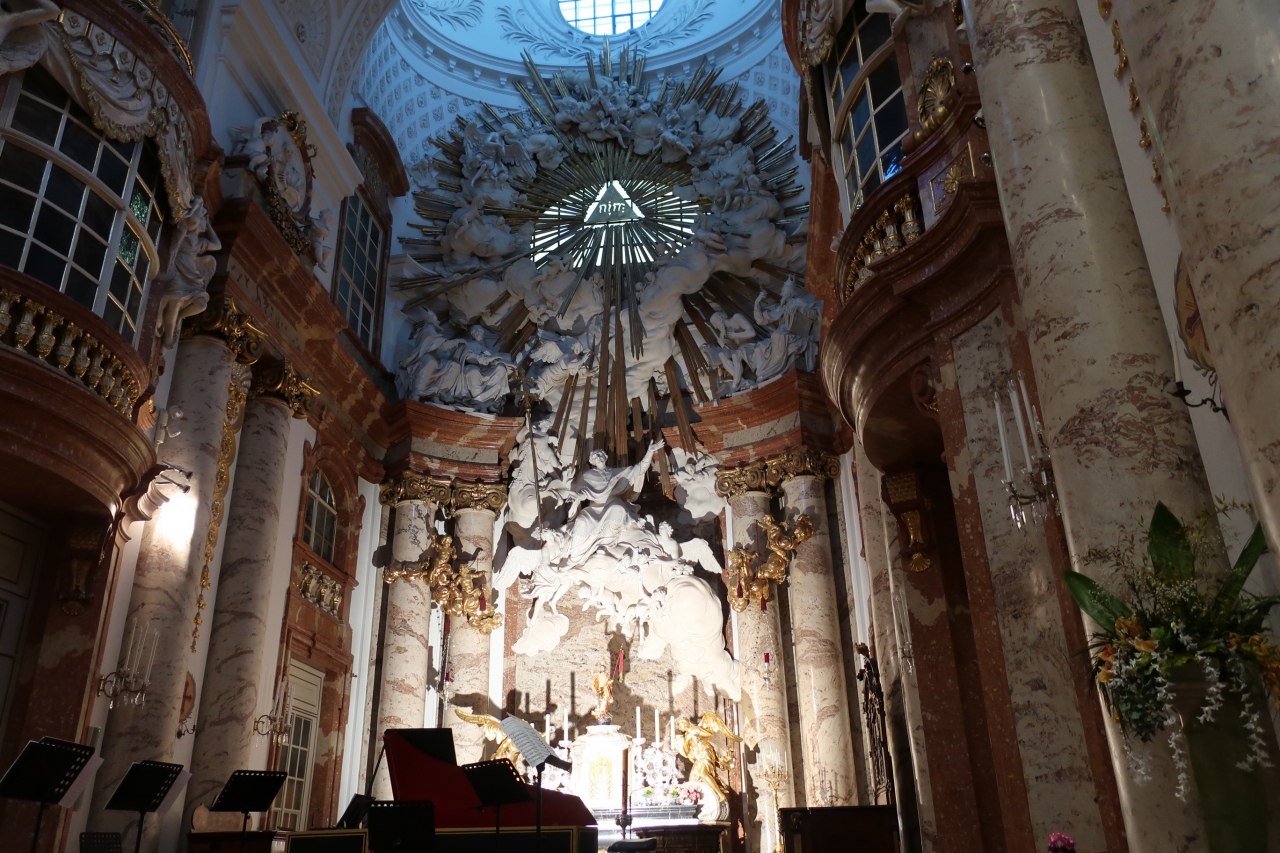 ウィーンの街歩きをしている時に、たまたま見つけた教会です。「ルーゲック広場」そばにある小路を歩いていくと、「イエズス会教会」があります。外観は地味で、何だろう?と思いましたが、中へ入ってみると、非常に豪華で驚かされました!。