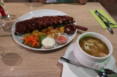 早めのディナーで利用しました。オープンテラス席、屋内席がありましたが、風が強かったため、屋内で食事しました。店内は非常に広く、早い時間帯だったため、お客も少なめ。ゆっくりと食することができました。メニューは、ローカルフードがメインです。今回は、「Traditional Style with chicken, vegetables and noodles)」と「Spare ribs」をオーダー。スープはさっぱりで、ヌードルが入っていておいしいです。スペアリブは、非常に大きく、2人でシェアして食べました。ソースが3種類あり、どれもイケてました。お肉も柔らかく、おいしいです。価格も良心的でしたよ。