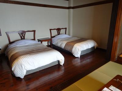 熊本・天草にある宿です。ちょうど4号橋の近くです。さらさ館の和洋室に1泊しました。さらさ館の和洋室は、階段を上らなくてはなりません。ただ、スーツケースなどはスタッフが運んでくれるので、身軽でお部屋に向かうことができました。お部屋は、ツインベッド、和室、そして、窓からはオーシャンビュー!!!。サンセットも見られ、素晴らしい景色を堪能できます!!!。また、半露天風呂があり、松島温泉を楽しむことができました♪。もちろん、大浴場もあります。1泊2食付きプランで、夕食は部屋食、朝食は朝食会場でビュッフェでした。夕食では、海の幸コースで、地元グルメの蛸の柔らか煮、車海老のおどり喰い、鮑の陶板焼きなど、どの料理も美味しく大満足です。朝食では、鯛茶漬けなど魅力的な料理が豊富でした。スタッフはフレンドリーで、とても素晴らしい滞在ができました。