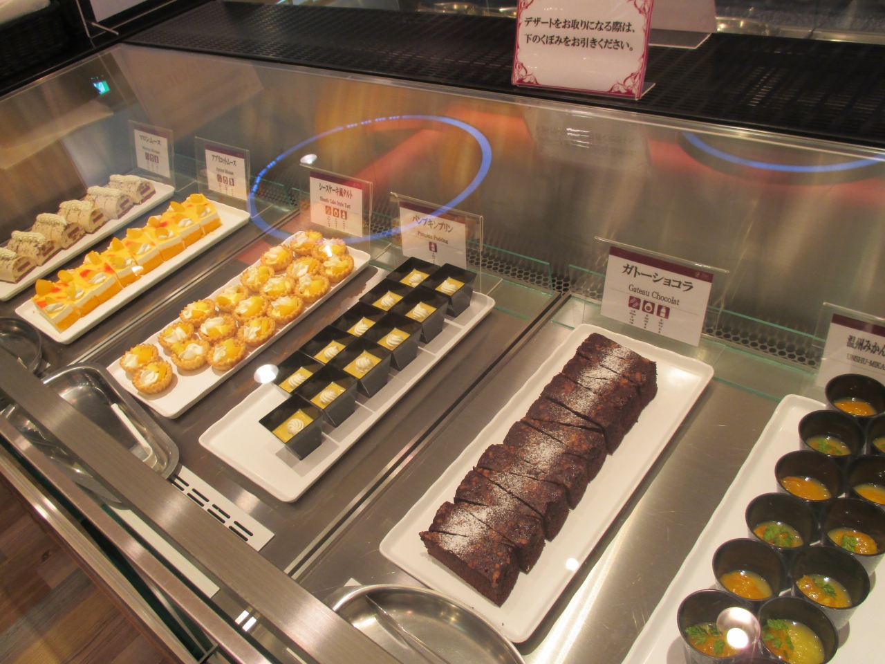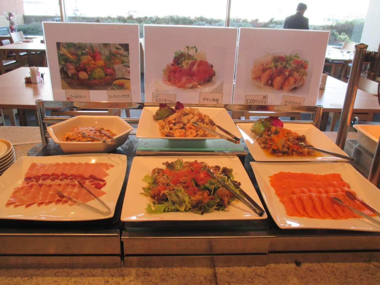 羽田エクセルホテル東急内あるビュッフェレストラン。土日祝日限定のビュッフェに行ってきました。料理は、種類はそれほど多くありませんが、どれもおいしく満足できます。コールドミール、ホットミール、お寿司、デザート、シェフが調理してくれるパスタ、ローストビーフなどがありました。ホテルビュッフェにしては、良心的な価格だと感じました。