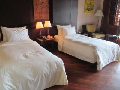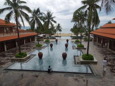 ダナンのビーチフロントホテルです。スーペリアガーデンビューに宿泊。ルームカテゴリーが一番下なので、部屋からの眺望はあまりよくありません。しかし、部屋は非常に広く、ゆっくりできます。天井も高く、圧迫感がないです。若干、古さは感じましたが、しっかり清掃されているので、気持ちよく過ごせました。バスルームは、トイレ、シャワールームに仕切りがなく、落ち着かない感じがあります。客室には、ノンラー、ビーチバッグ、ビーチサンダルが用意されていて、たくさん利用させてもらいました。こちらのホテルのプールは、インフィニティープール、ラグーンプールと2つ。ビーチはプライベートビーチで、静かに過ごせます。スタッフの対応も素晴らしく、いつも笑顔で挨拶してくれます。