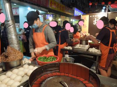 饒河街観光夜市の松山駅側の入口付近にあります。人気のあるお店で、購入するまで並びます。一つ50元。並んでいるときに、胡椒餅の作る工程が見ることができ、楽しめます。窯にペタっと貼り付けて焼き上げます。外はカリッと、中は熱々でピリッとしておいしいです。ネギ、豚肉たっぷりの胡椒餅、最高です。