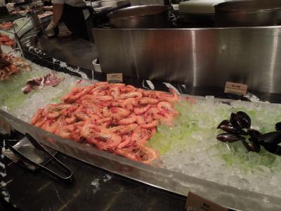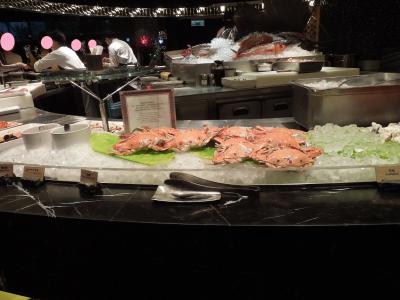 朝食、ディナーで利用しました。レストラン内は豪華で、そこに入るだけでテンションが上がってしまいます。朝食は、パンの種類が豊富です。また、和食、中華、韓国料理など、多国籍ビュッフェです。ディナーは、シーフードビュッフェが催されています。平日でも非常に混雑していました。予約必須です。シーフードは、カニ、エビ、貝類など、目移りしちゃうほど山ほどあります。ヌードルコーナーも、うどん、ラーメン、パスタなど豊富で、具、スープをチョイスしたら、シェフがその場で調理してくれます。お寿司、刺身コーナーが一番人気。その場で魚をさばいているので、新鮮です。デザートも豊富で、ハーゲンダッツは特に人気がありました。また、リピートしたいレストランでした。