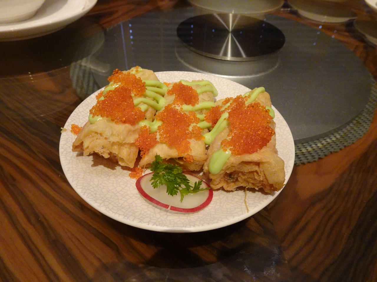 ブギスのインターコンチネンタルホテルに入っている中国料理のレストランです。ランチで利用しました。コース料理、点心、アラカルトメニューがありました。私は、アラカルトメニューや点心メニューから、いくつかオーダー。春巻きのように揚げた皮の中にプリプリの海老が入っており、とびことワサビマヨネーズがかかった点心が美味しいです。また、ホタテのXOジャン炒めや蟹炒飯など、どの料理も美味しいです。見た目も綺麗で、モダン中国料理のようでした。スタッフの対応もフレンドリーで、素敵なランチができました。