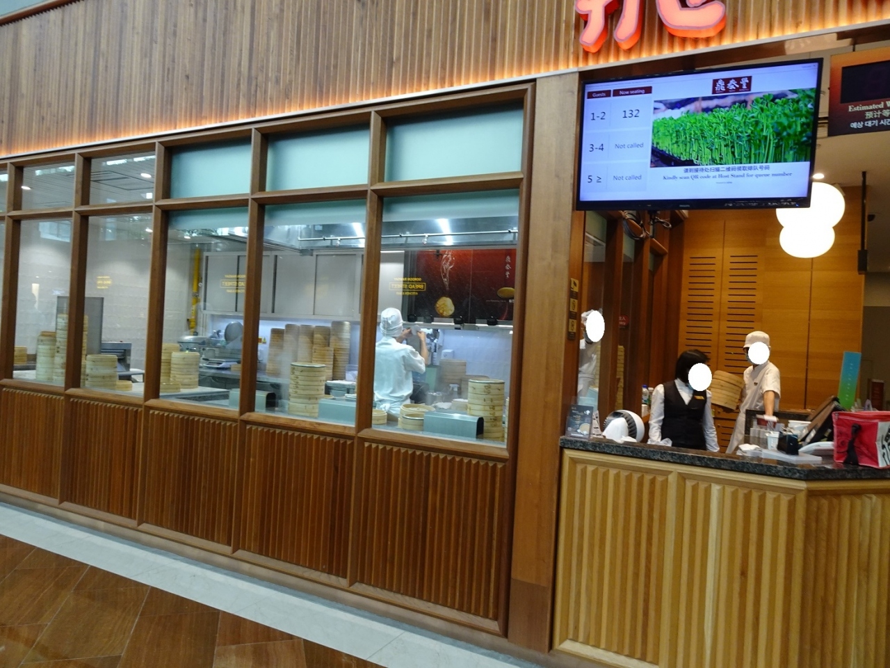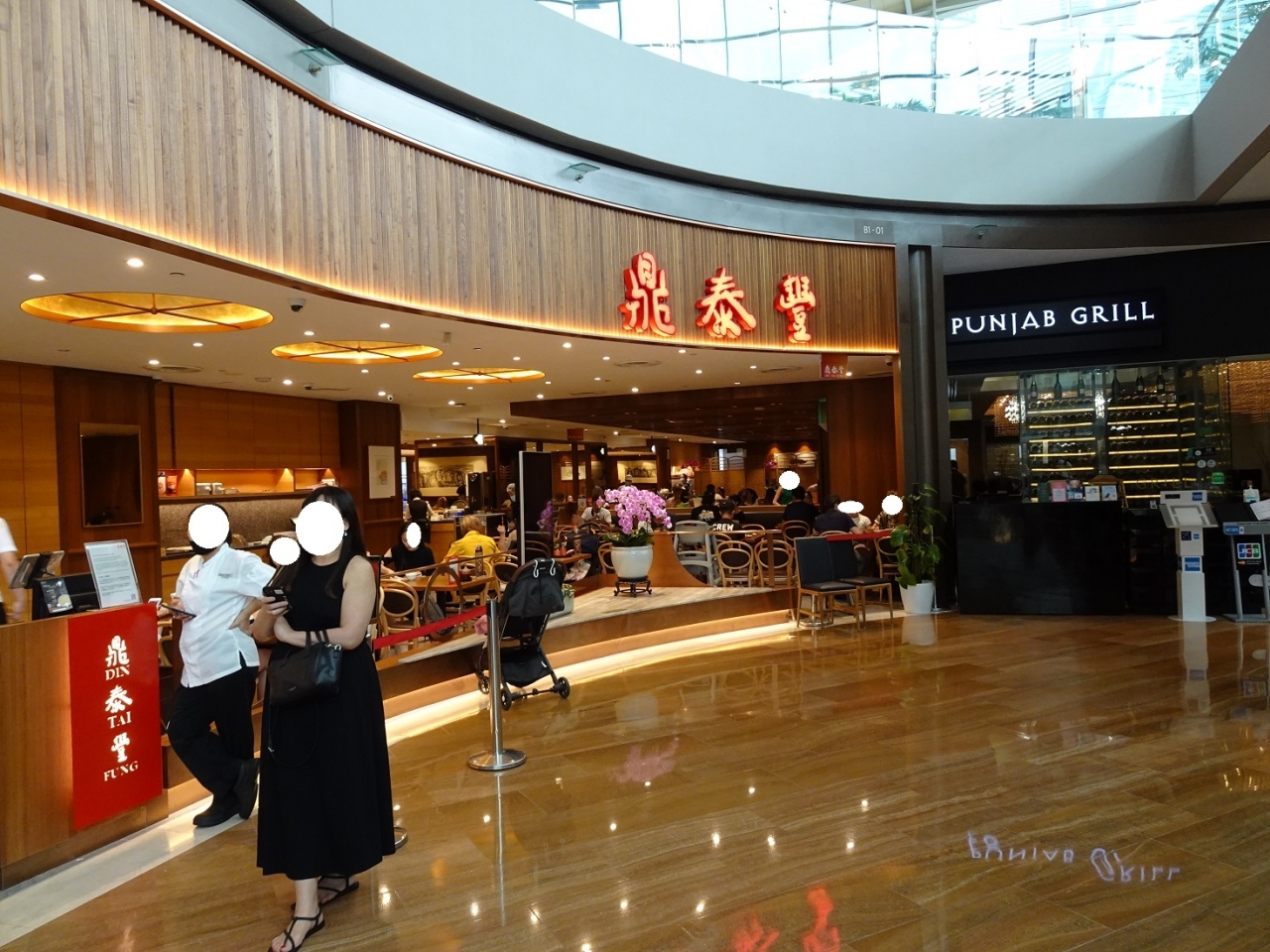 マリーナベイサンズのショップスにあります。ランチにもディナーにも中途半端な時間帯に訪れました。なので、入店まで15分ほどの待ちで入れました。ただ、入店するにもスマホで席待ち番号を得る、オーダーもスマホと、スマホがないと何もできません。席の準備ができると、入口のモニターに番号が出ます。また、スマホにも連絡がきます。小籠包は、安心の味で、とても美味しいです。今回は小籠包メインでいただいたので、次回は他の料理も食べたいです。スイーツは抹茶プリンが美味しかったですよ!。