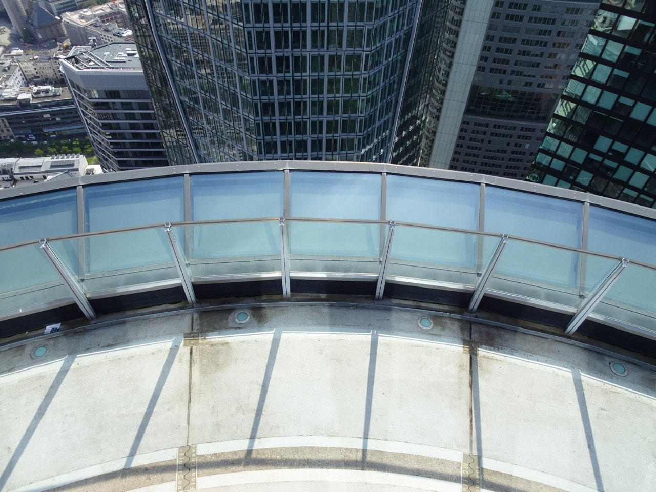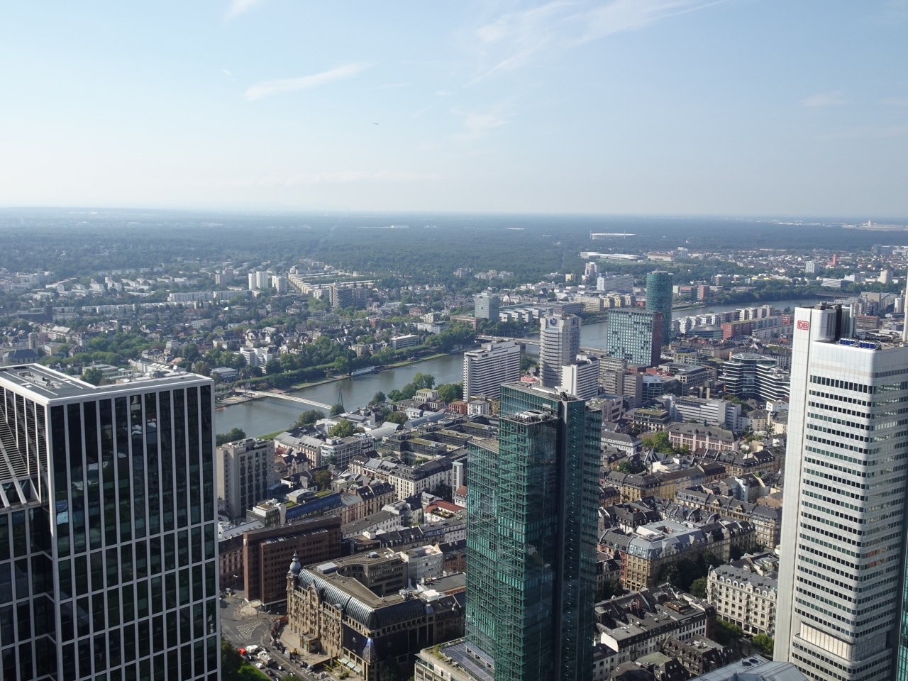 フランクフルト観光の見どころの一つです。フランクフルトのビジネス街に建っている円柱のような高層ビルがマインタワー。入場は9ユーロ。高速エレベーターで上へ。屋上展望台からの景色はフランクフルトの市街地が見渡せて最高です!。360度見渡せますよ!。高所恐怖症の私は、初めは怖かったのですが、下をのぞき込んでも大丈夫なようになっていたので、安心して見学できました(笑)。オープン時間に訪れると、待ち時間はほぼなく、スムーズにエレベーターに乗れました。フランクフルトを訪れたなら、一度は見ておきたい景色です!!。