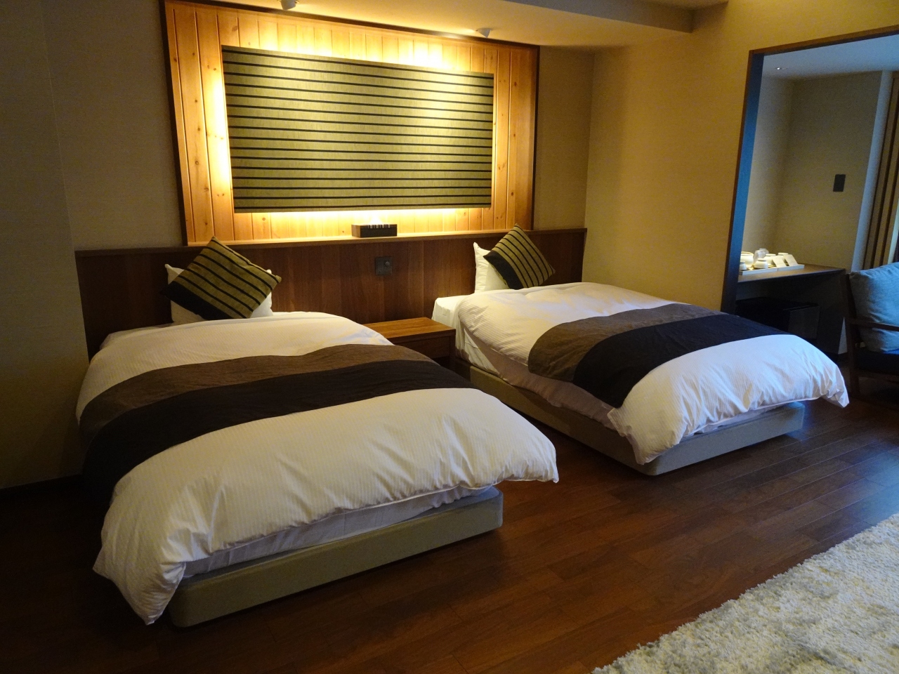 鬼滅の刃の無限城に似ていると言われるホテルロビー。こちらを実際見てみたくて、宿泊しました。館内に入ると、あの無限城が目の前に。赤く輝くステージ、そして階段、全てが鬼滅の刃の世界でした。夕方からはステージで三味線の演奏もあり、より素晴らしいものに♪宿泊した部屋は、コンフォートツインルーム(大人専用の客室)」。寝心地の良いベッド、テーブルセットがあり、シンプルで広々したお部屋でした。眺望は渓谷が見えますよ。部屋にはシャワーブースしかありませんが、大浴場があるので問題なし。客室はリニューアルされたようで、どこも綺麗でした。夕食では、馬肉のすき焼きや会津蕎麦など、地元料理などをいただけました。朝食はビュッフェです。館内には大きな売店やラウンジなどもあり、ゆっくりホテルステイを楽しめました。