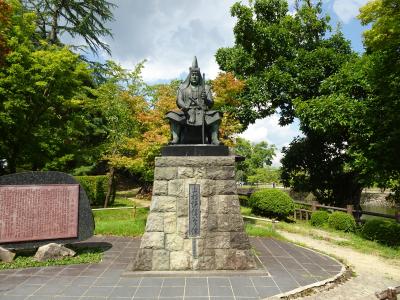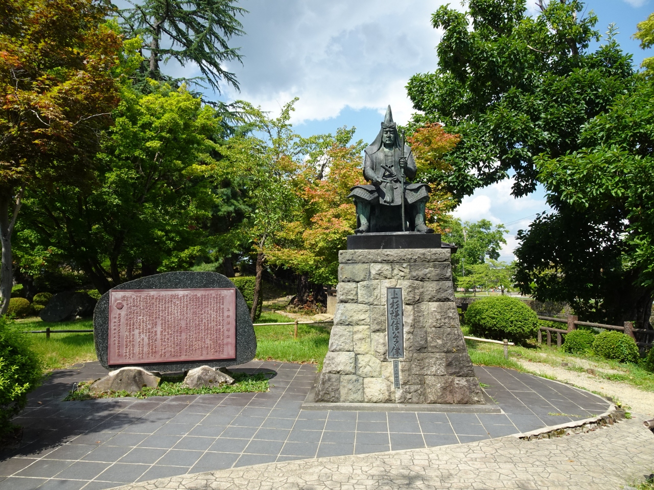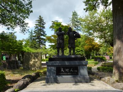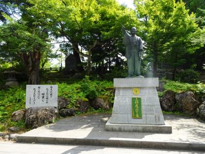 米沢城跡・松が岬公園では、上杉神社や上杉家ゆかりの人物の銅像などが建っています。かつて伊達氏の本拠地が置かれ、伊達政宗が生まれたところでもあります。江戸時代には上杉氏が米沢藩を構えました。現在、城はありません。米沢城本丸跡に上杉謙信を祀る上杉神社が建立されています。私は、正面参道からではなく、北参道から入りました。大きな駐車場が周辺にあり、たまたま車を停めた駐車場が北参道近くでした。ちなみに、正面参道からの方が、銅像など見学しやすいです。また、駐車場は無料でした。