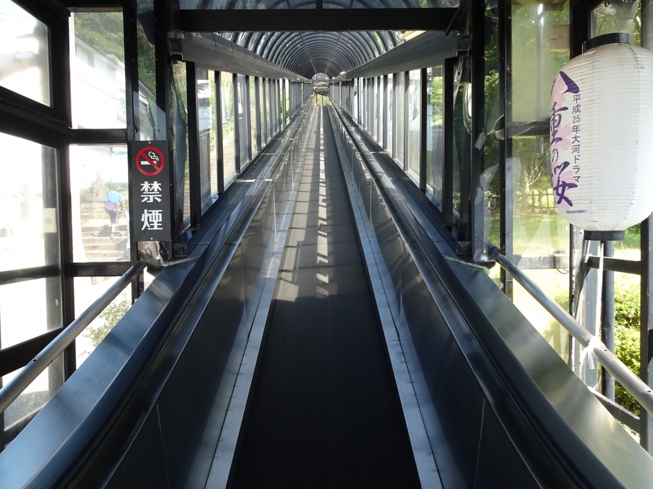 飯盛山参道入口付近に、飯盛山スロープコンベアがありました。250円で利用できます。暑い日だったので、スロープコンベアのおかげで楽に上に上れました♪。ただ、なかなかの傾斜なので、しっかり捕まって乗らないと、バランスが崩れそうでした(笑)が、スピードはゆっくりなので大丈夫です!。利用客は少なめでしたが、私的にはおすすめです♪。