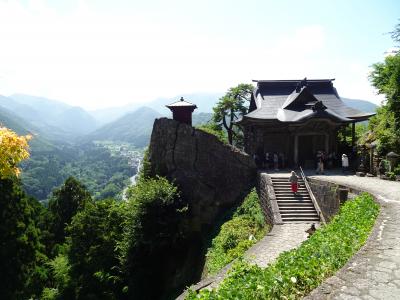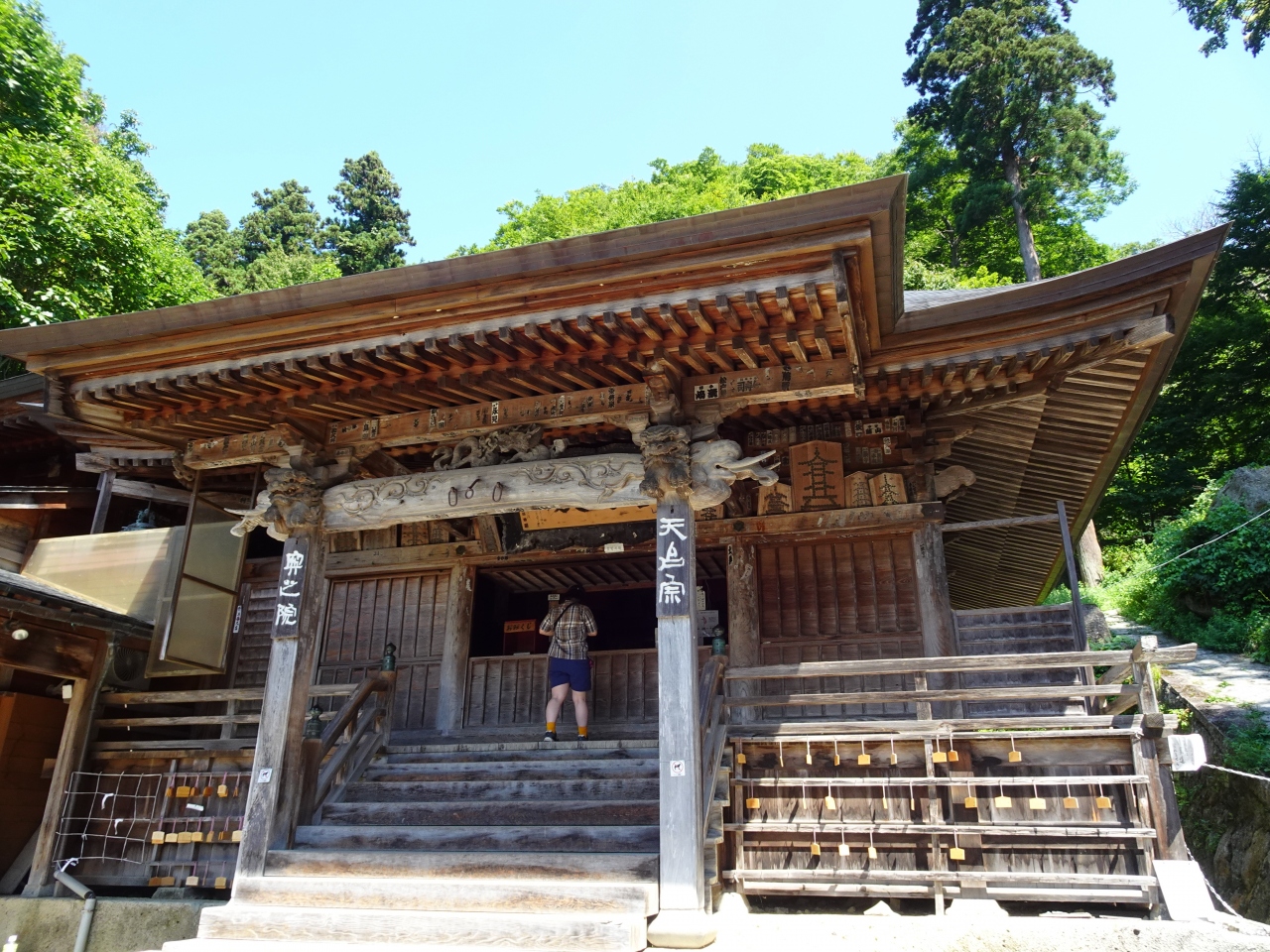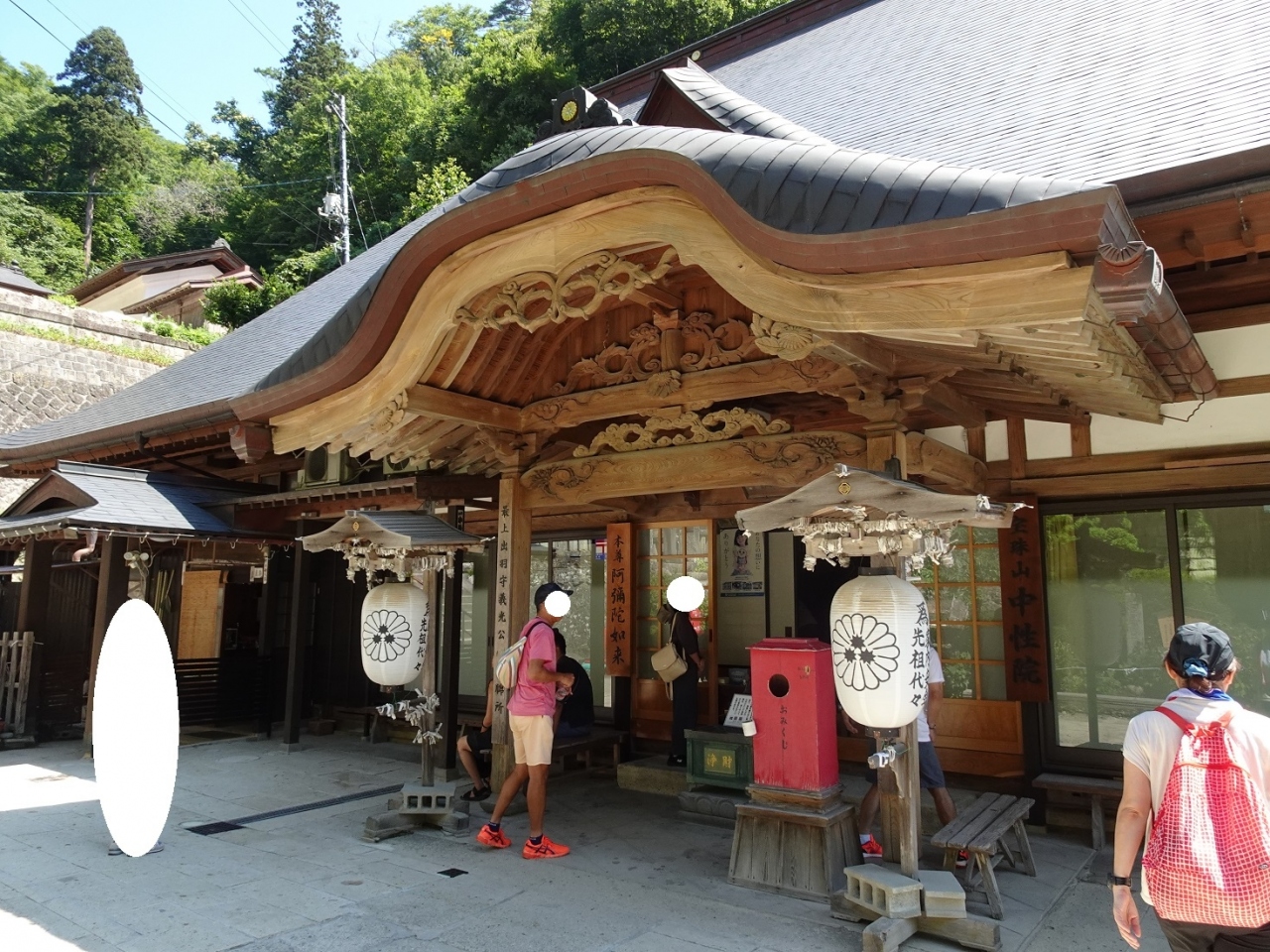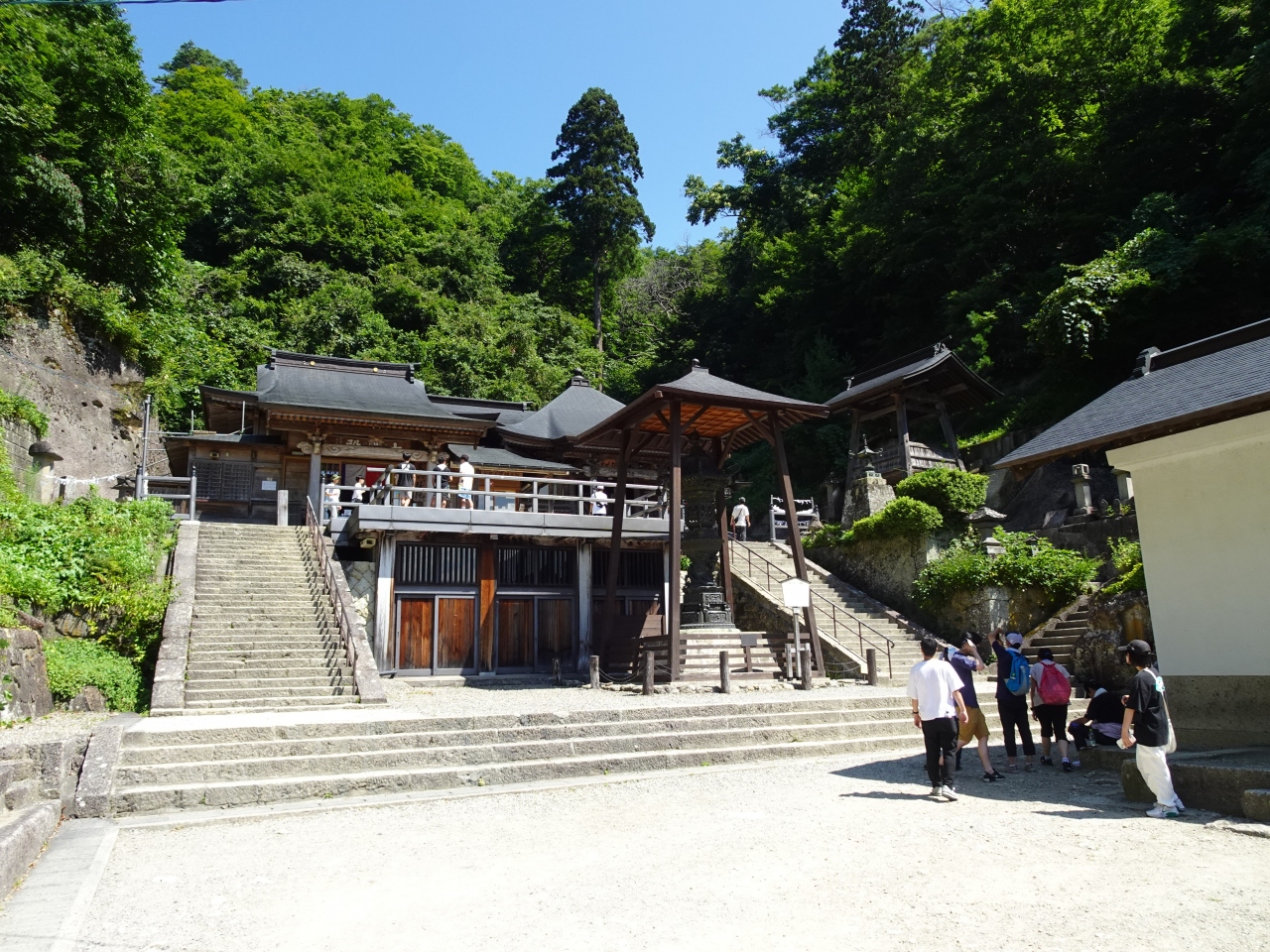 山寺の登山道の入口付近に建っていました。立石寺の本堂ににあたる御堂です。現在の建物は1356年に再建されています。ブナ材が使われている建築物では日本最古と言われていますよ。宝珠橋を渡り、門前町を歩いて行くと、一番最初にあります。ちなみに、国の重要文化財に指定されているそうです。