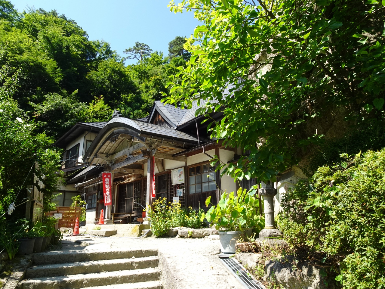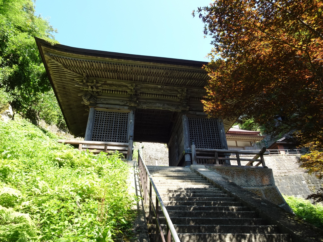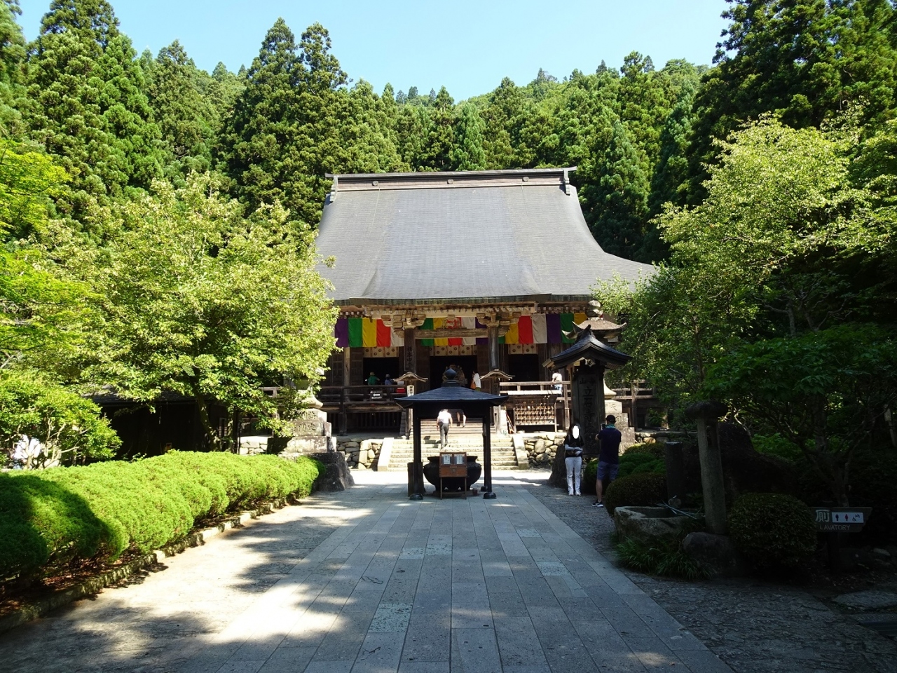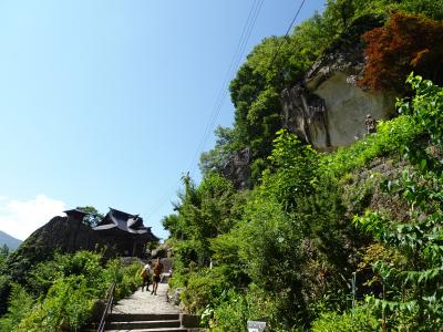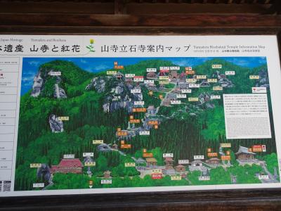 山寺の登山道の入口付近に建っていました。立石寺の本堂ににあたる御堂です。現在の建物は1356年に再建されています。ブナ材が使われている建築物では日本最古と言われていますよ。宝珠橋を渡り、門前町を歩いて行くと、一番最初にあります。ちなみに、国の重要文化財に指定されているそうです。