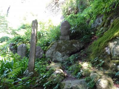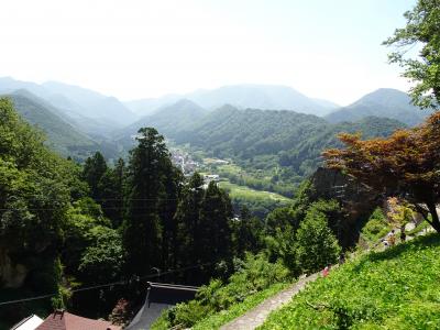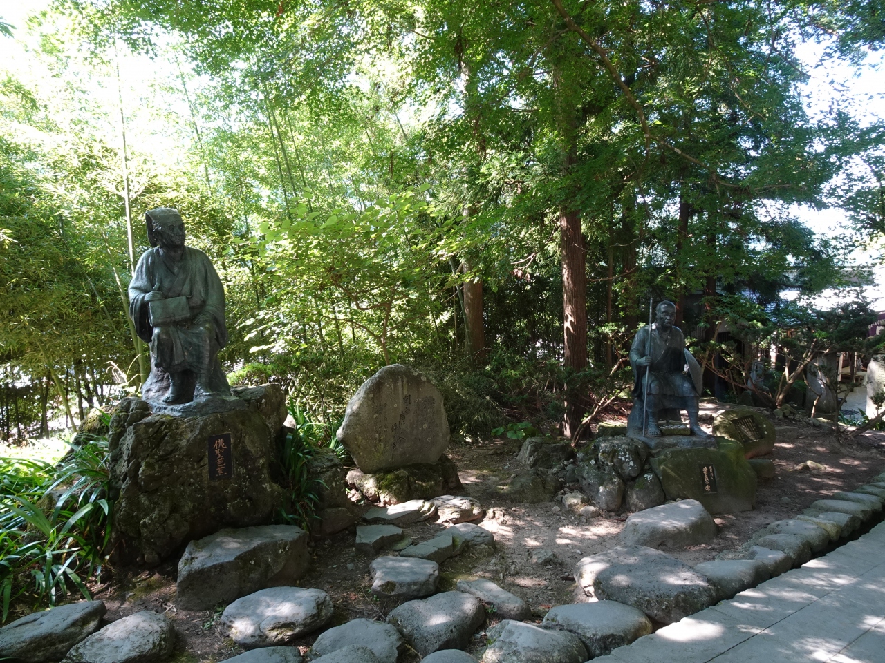 根本中堂から山寺の登山口、山門へ向かっている途中に、松尾芭蕉と弟子の河合曽良の像が建っていました。芭蕉は「奥の細道」の途中に山寺を訪れています。「閑かさや岩にしみいる蝉の声」を詠んだことで有名ですね。昭和47年に芭蕉像が建立され、その後、「奥の細道」紀行300年にあたり、芭蕉に随行し行脚した曽良像が建立されたようです。旅の途中で休憩しているような姿が和やかな雰囲気にさせてくれています。