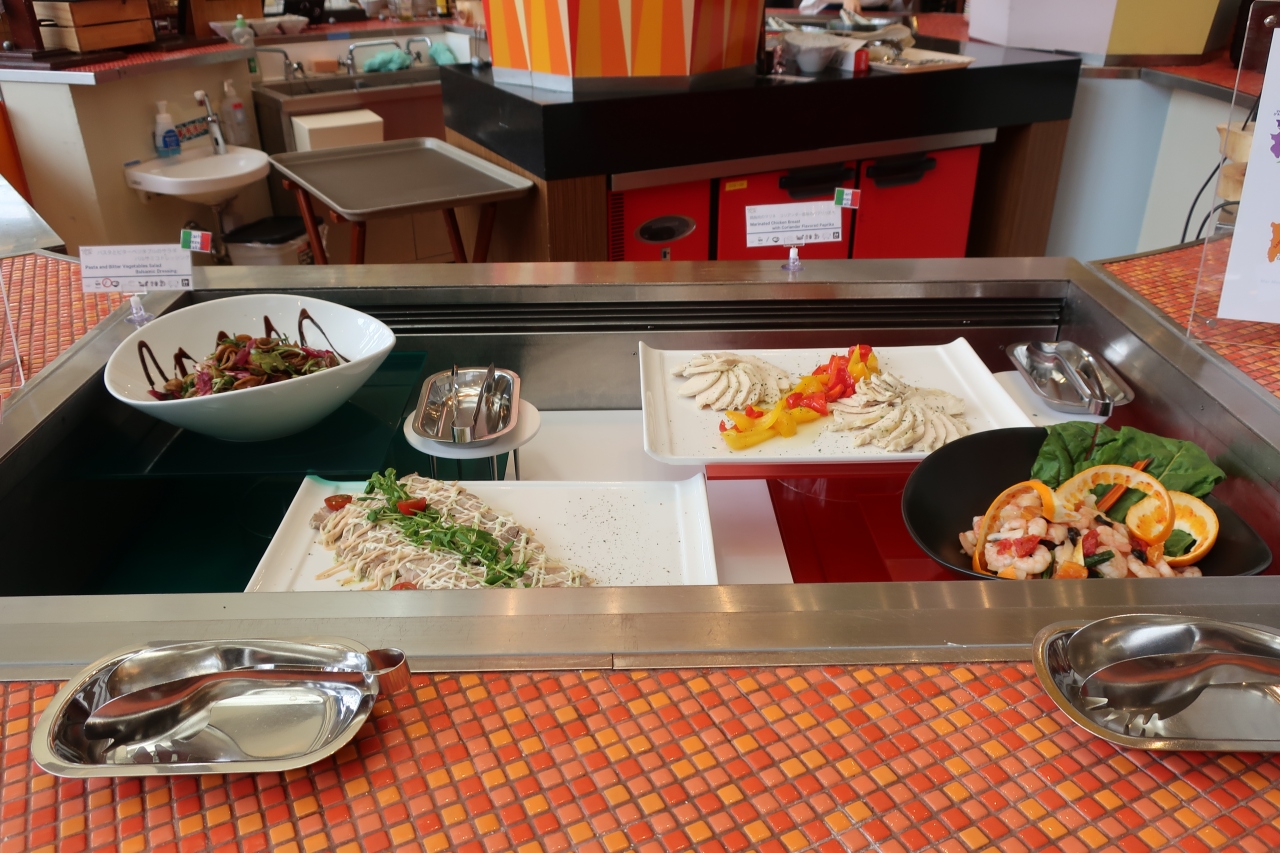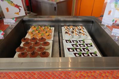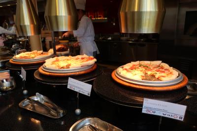 ランチで利用しました。「シェラトン・グランデ・トーキョーベイ・ホテル」内にあるレストランです。訪れたときは、「アーリーイタリアンビュッフェ」を開催中。「ピザ」、「パスタ」、「冷製オードブル」、「デザート」でイタリアを思わせる内容でした。また、通常のビュッフェで提供されているメニューもあります。各テーブルに一つずつ、トマトバジルのブレッドが運ばれてきました。これが、熱々、ふわふわ、ちょっぴり甘い風味で、おいしかったです。ビュッフェメニューも、種類豊富で、味もおいしいく、ビュッフェを楽しむことができました。特に、「ローストビーフ」はおすすめですよ!。