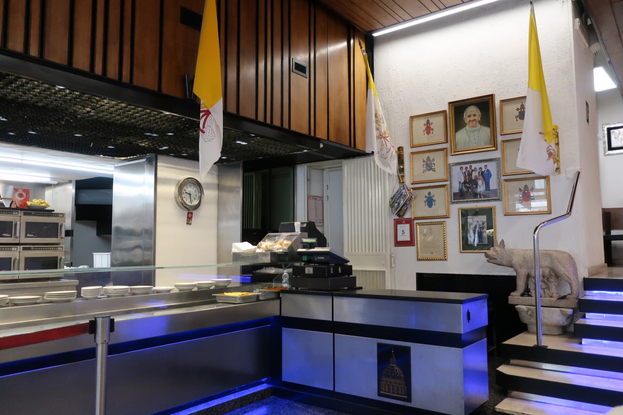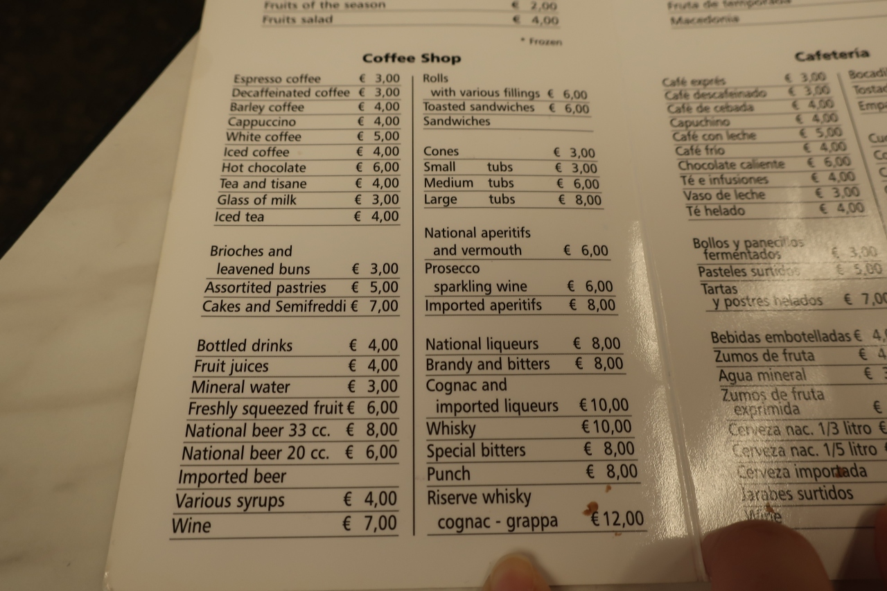 サンピエトロ大聖堂を見学後、こちらのカフェで休憩しました。セルフサービス形式で、オーダーします。店内は、若干シンプル過ぎる雰囲気でした。ドリンクメニューだけでも、種類が豊富です。結局、カプチーノにしちゃいましたが・・・。ちなみに、こちらのカフェでトイレをお借りしましたが、チップが必要でした。