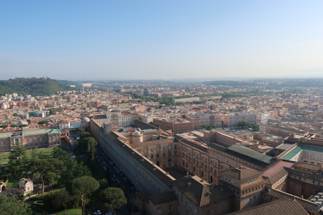 サン・ピエトロ大聖堂のクーポラへは、エレベーターか階段で行くことができます。私が訪れたときは、エレベーター利用が10.00ユーロ。階段利用が8.00ユーロでした。時期によって料金が違う様な・・・。私は、エレベーターを利用しましたが、エレベーターを降りた後でも結構な階段が待っています。ただ、その階段を上ると、素晴らしい景色が待っていました。ぜひ、大聖堂へ行かれたなら、クーポラも一緒に見学してください。