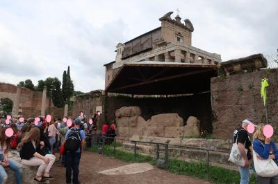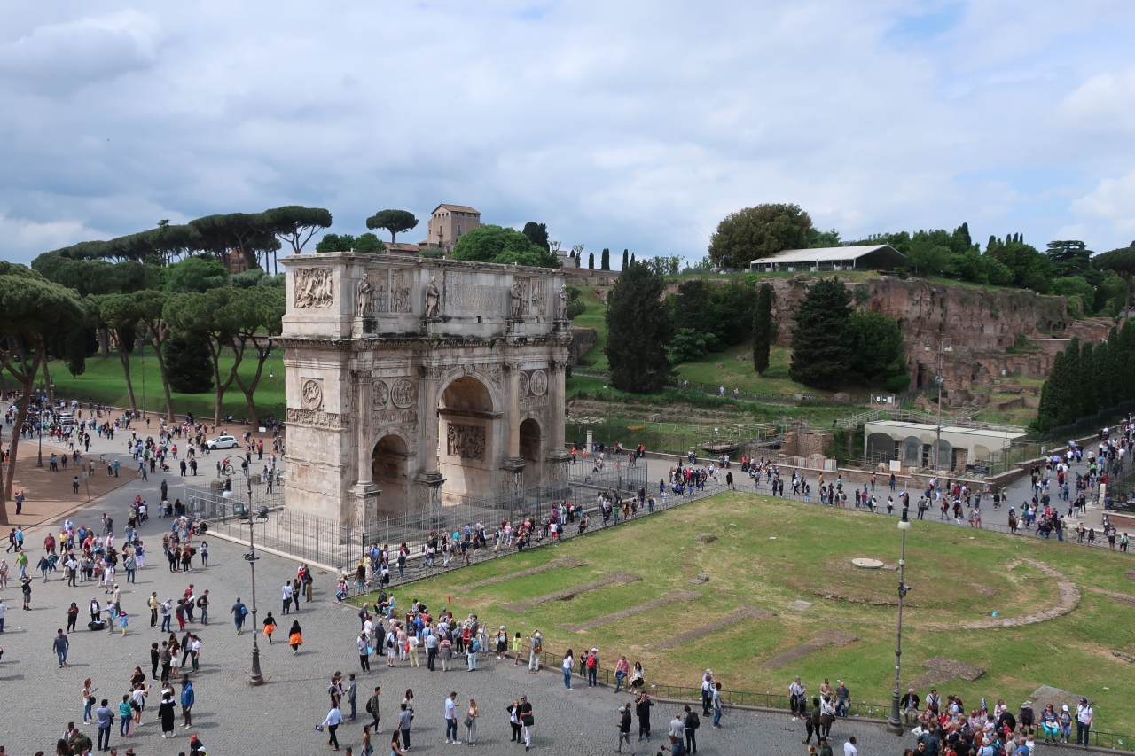 コロッセオを見学中に外を覗くと、コンスタンティヌスの凱旋門が見えました。312年当時、西ローマ副帝だった「コンスタンティヌス」が、「ミルヴィオ橋の戦い」で、正帝「マクセンティウス」に勝利したことをたたえて建てられました。とても立派な建築物で、目を奪われてしまいます。