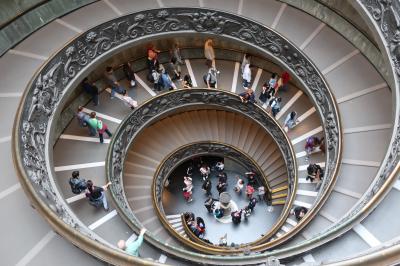 ヴァチカン博物館へは、入場チケットを日本から事前予約して行ってきました。ヴァチカン博物館では、入場チケットを購入する列が長蛇。私たちは、スムーズにチケット売り場まで行くことができ、チケットを手にすることができました。少し高くはなりますが、時間がもったいないと思う方は、ぜひ事前購入をおすすめします。オーディオガイドの貸し出しもあり、日本語で説明を聞きながら、館内をまわることができました。じっくりまわると、いくら時間があっても足りないため、ピンポイントだけチェックしながら見学。それでも、十分に満足の行く時間を過ごすことができます。