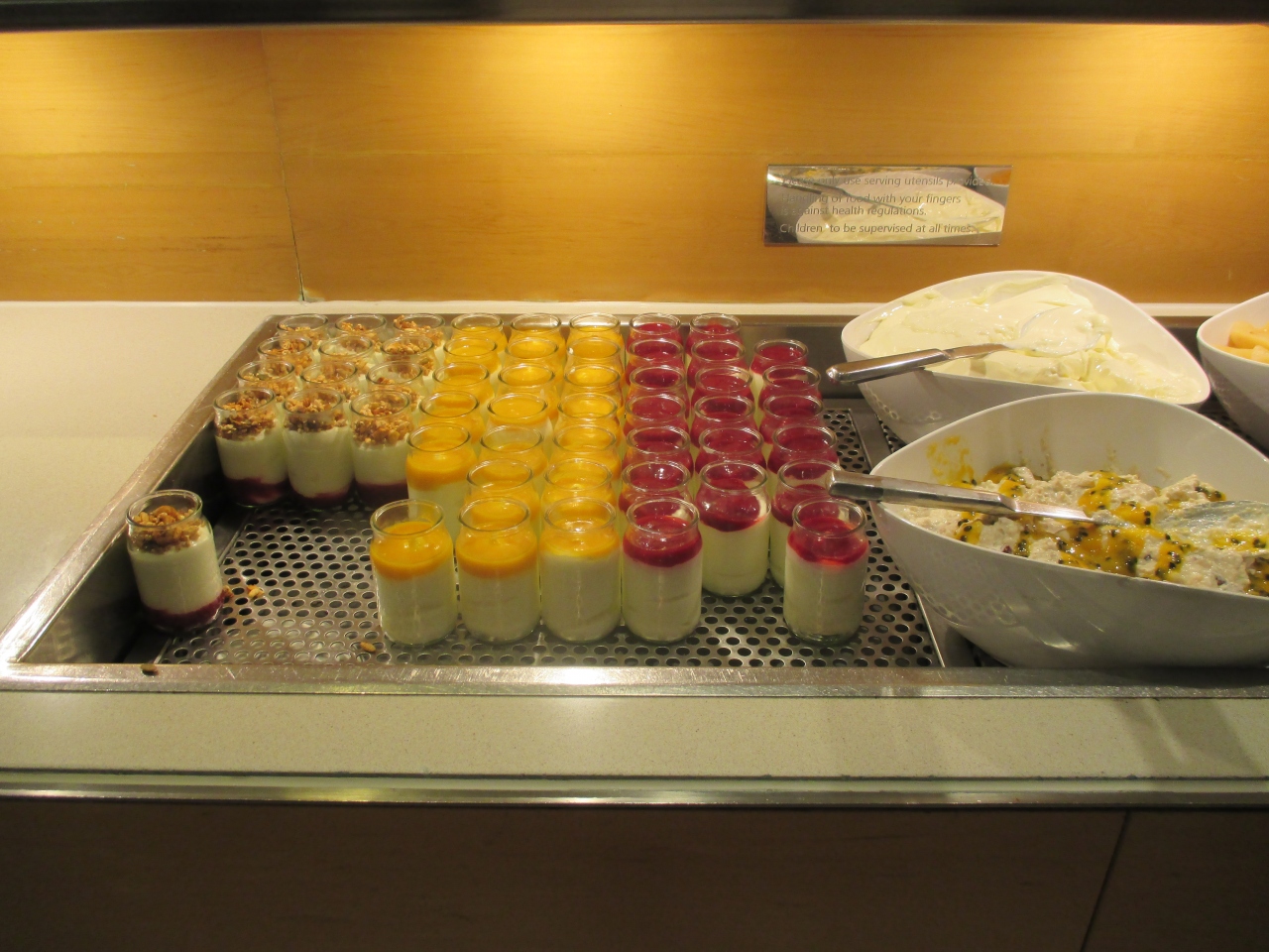 早朝便に搭乗のため、朝早くにカンタスラウンジを利用しました。ラウンジ内は広く快適ではありましたが、利用者が多く、カウンター以外の席は空きが少なかった。テーブルは、片付けが間に合わないのか、食器がそのままで残念な感じです・・・。フードメニューは、ジ徐々に提供されてきました。また、カフェはスタッフが1つずつ作ってくれますので、ぜひオーダーしてみてください。次回はゆったりラウンジを満喫できるとよいな・・・と思います。