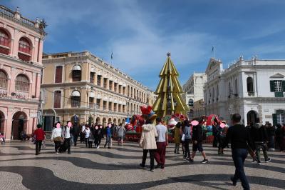 マカオの世界遺産めぐりをするなら、セナド広場からスタートするのがおすすめ。セナド広場では、突然、ヨーロッパの雰囲気が現れます。白と黒の石畳が波のようになっていて、素敵です。また、まわりの建物も歴史的なものばかりで、カラフルな街並みになっています。ワクワクしながら歩くことができました。ただ、観光客が非常に多く、どこへ向かうにも混雑していました。