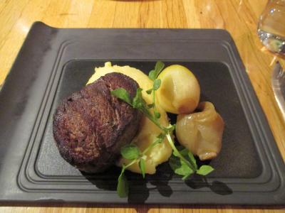 ダーリングハーバー沿いにあるレストランです。ディナーで伺いました。人気のあるレストランなので、日本から事前に予約し、当日はスムーズに入店できました。メニューは、アンガスステーキがメイン。サーロインステーキとWAGYUテンダーロインをオーダー。どちらも、ミディアムレアでいただくことをお勧めします。特にWAGYUテンダーロインは、とても柔らかく、おいしくいただけました。それぞれ、別料金でステーキソースをオーダーしましたが、そのお肉に合うソースは、スタッフが教えてくれました。店内の雰囲気は非常に賑やかなので、楽しく過ごすことができました。