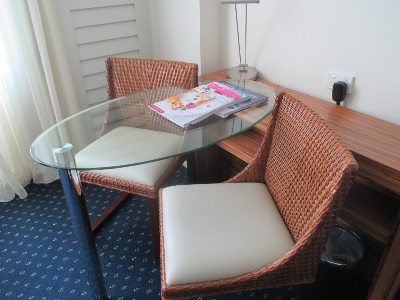 何度が利用していましたが、いつも西館に宿泊していました。今回は初めて東館に宿泊。スタンダードルームだったので、クイーンベッド1台。テーブルセットには、椅子が1つだけ。TV台兼用デスクに椅子があったので、2名で宿泊しても、困りはしませんでしたが、なんとなくさっぱりしすぎで残念に思いました。クローゼットも、扉がありません。少しでも、広く感じさせるためなのかなぁ?。東館全体がそうなのかはわかりませんが、夜は客室が暗すぎでした。ライトをつけても、暗くて・・・。寝るだけと考えて宿泊するなら良いのでしょうね。