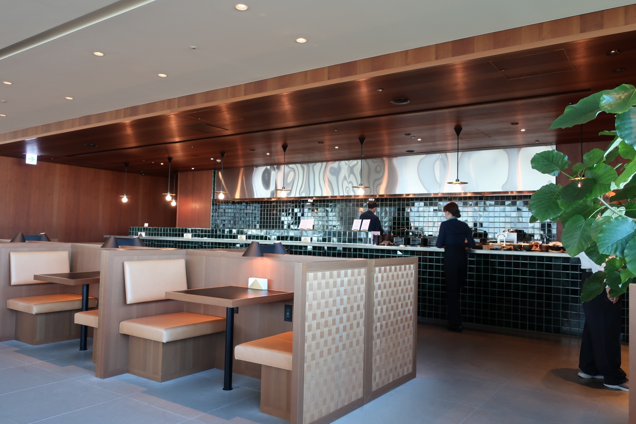 羽田空港国際線にあるキャセイパシフィックラウンジを利用しました。朝の利用だったせいか、とても空いていてゆったりできました。フードでは、ヌードルバーがあり、担々麺、雲吞麺を作っていただきました。朝のメニューでは、そのほかにフレンチトースト、和定食もあり、楽しむことができます。バーカウンターでは、バーテンダーがカクテルなども作ってくれます。旅行前に充実した時間が過ごせました。
