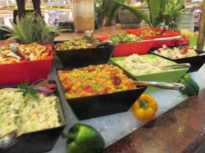 暑いバンコクの観光中にたまたま見つけたレストラン。こちらのレストランは、ビュッフェがメインだったのですが、スタッフにドリンクだけでもOK?と訪ねると、もちろんOKということで利用させていただきました。アラカルトメニューをいただき、ドリンクをオーダー。スイカジュースはめちゃくちゃ甘く、最高です!。スタッフは、日本語のできる方がいたりと安心です。ちらっと、ビュッフェを見させていただきましたが、とても魅力的な料理がたくさん。盛り付けも美しく、とても美味しそうです。次回はぜひビュッフェを利用したいと思っています。