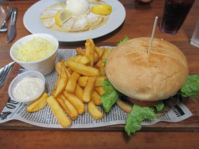 サーファーパラダイスにあるレストラン。ディナータイムに利用しました。遅い時間帯だったため、店内は空いていました。日本語メニューもあるので、安心して利用できます。メニューはパンケーキはもちろん、ハンバーガー、お肉料理、クレープなど、種類豊富です。どの料理も、ボリュームたっぷり。一人でいただくには多すぎです。ハンバーガー、クレープをオーダーしましたが、おいしくいただくことができました。