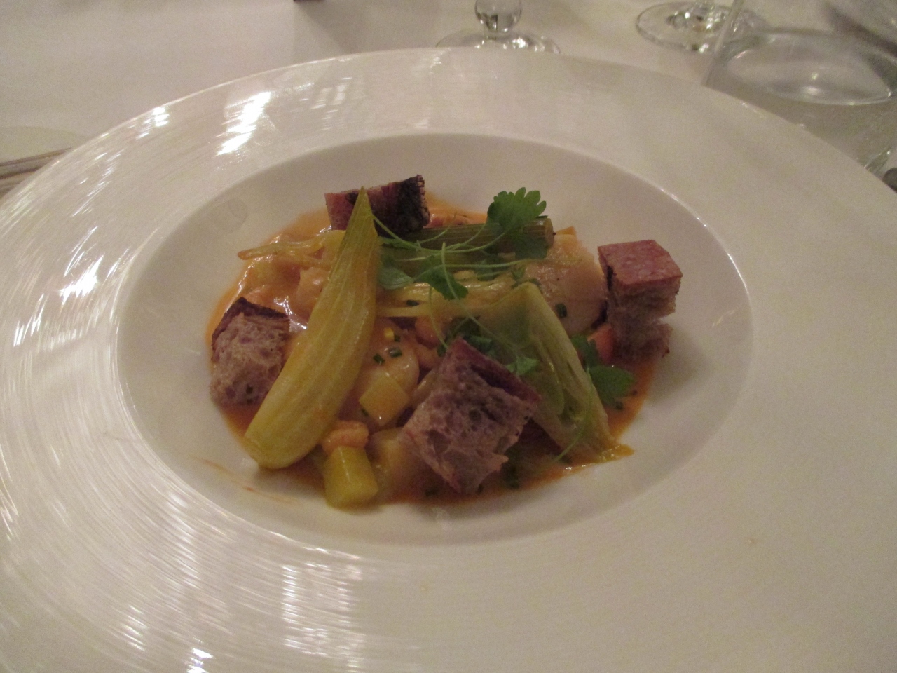ランチで利用しました。事前に調べたときは、2コース、3コース料理があると。しかし、訪れた日は土曜日だったせいか、いただいたメニューにはそれらはなく、「ESCOFFIER SIGNATURE DISHES」をチョイス。こちらのコースは、4コースでした。どの料理もちょうど良い量で、どれもおいしくいただきました。特に、メインのフィレステーキは、柔らかく、ジューシーでおすすめです。店内は、落ち着いた雰囲気で、静かに食事ができました。スタッフは、とてもフレンドリーで、こちらの要望にもすばやく対応してくれます。おすすめにレストランです。