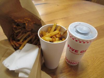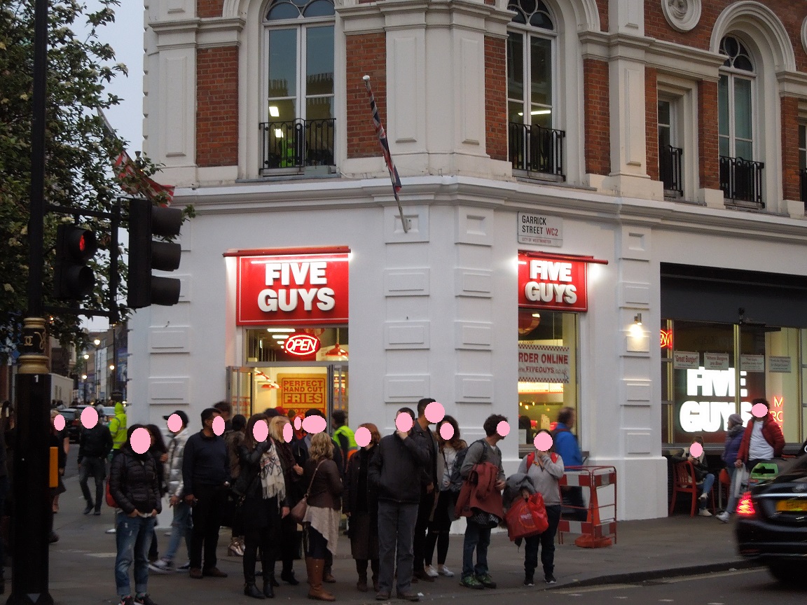 ロンドンで初めて「FIVE GUYS」というお店を知りました。今回は、フライドポテトだけをいただきました。ラージサイズをオーダーすると、カップには入りきらず、袋に大量にこぼれるくらい。味も最高!。ノーマルとスパイシーがありますが、シンプルなノーマルがおすすめです。こちらのお店は、ハンバーガーが人気だったらしいのですが、今回は食べることができず。自分でカスタマイズできるようで、次回訪れる時が楽しみです。