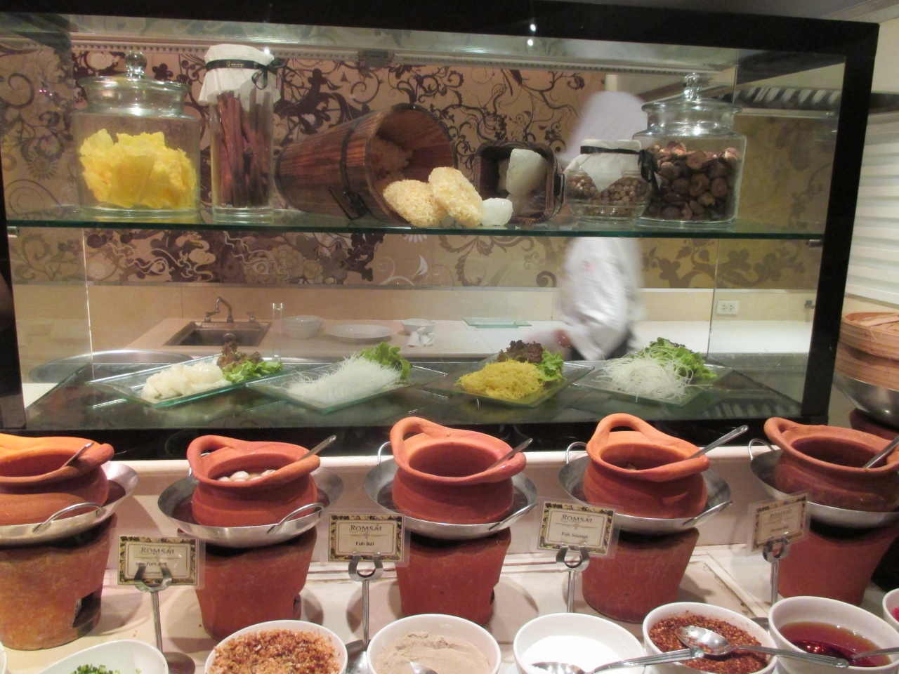 バンヤンツリーバンコク内にあるレストラン。朝食で利用しました。朝食は、ビュッフェスタイルです。多国籍料理で、種類は豊富です。卵料理はスタッフにオーダーします。和食で、巻き寿司、チキンかつなどがあるのはうれしいです。ヌードルコーナーは、スタッフが調理してくれますので、好きな麺だけオーダー。また、こちらのレストランでは、朝からスパークリングワインがありました。お洒落ですね!。店内は、結構混雑していました。時間帯がちょうどピーク時だったのかもしれません。