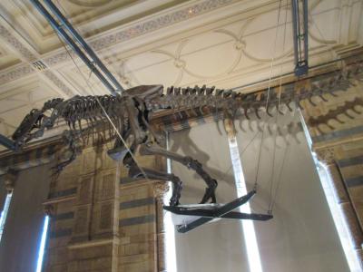 自然史博物館はサウスケンジントンにあります。入場してすぐに、恐竜の化石のお出迎え。エリアは、レッド、グリーン、ブルー、オレンジで4つに分かれています。ダイナソーは、ブルーエリア。すべてのエリアを満足いくまで見学するには、1日かかりそうなくらいです。阪神・淡路大震災の揺れを体験するコーナーもありました。イギリスは、地震が少ないようなので、震度7の揺れは驚きますよね。ダイナソーエリアは、やはり人気の様で、とても混雑しています。どのエリアも興味のひかれるものがあり、楽しめました。おすすめの博物館です。