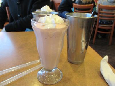 ランチタイムに行きましたが、非常に混雑していました。メニューが豊富。ハンバーガーは自分で好みに作り上げることもできます。パテ、バンズ、チーズ、トッピングなど自分でチョイス。サンドイッチは少しパサパサ感がありました。また、シェークをオーダーすると、作り余りも持ってきてくれるので、お得な感じがします。