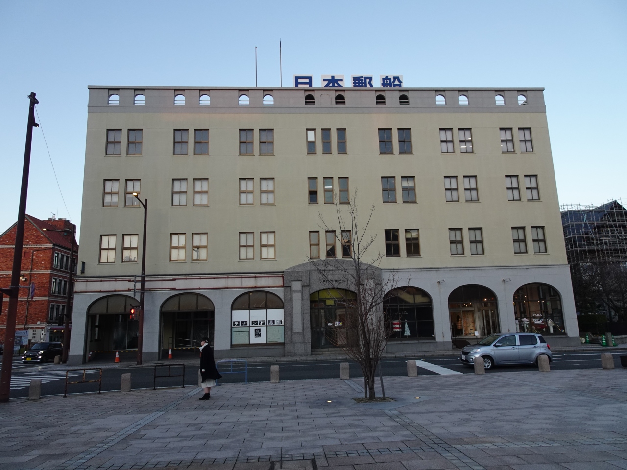 門司港駅を出ると、目の前に旧日本郵船門司支店の建物が建っています。1927年に建設され、鉄筋コンクリート4階建ての建物です。シンプルな外観ではありますが、レトロな雰囲気が出ています。門司港レトロ地区にマッチしていると思えます!。