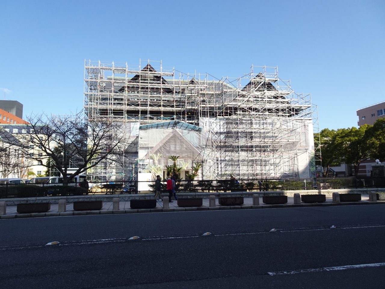 訪れた時は、ちょうど工事中ということで、足場とカバーで、全く外観を見学することはできませんでした。1921年に三井物産の接客、宿泊施設として建設された「旧門司三井倶楽部」。歴史的な建物のようなので、見学できず残念でした。レストランは営業しているようですが、訪れた時(12月25日)は、ランチの営業のみで、翌日からはしばらくお休み(年末年始ということで)ということでした。レストラン利用時は、伺う前に電話で確認した方が良いか思いました。アインシュタイン夫妻が宿泊したということで、興味がありましたが、次の機会に取っておくことにします♪。