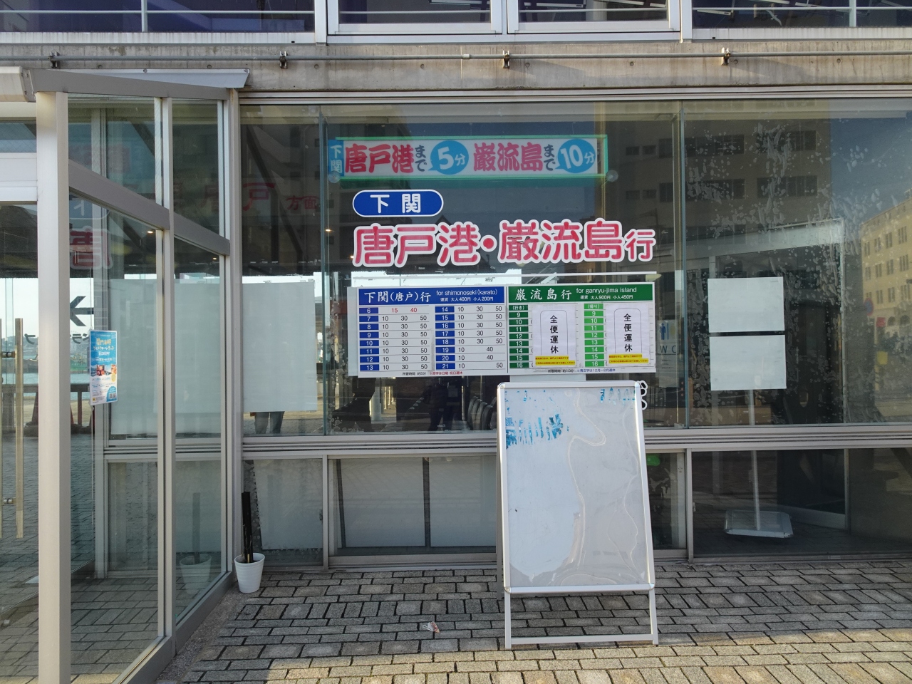 門司港と唐戸や巌流島へ行くことができます。門司港ー唐戸間は何度が利用(片道400円)。20分毎に運航し、5分程で到着します。また、今回は門司港から巌流島へ行くときに利用しようと思っていましたが、訪れた時は、門司港ー巌流島の直行便は運休しており、門司港ー唐戸ー巌流島の航路で巌流島へ行きました。トライアングルフリーパス(1000円)という1日乗り放題になるお得なきっぷを購入。ホント、お得に利用できました。門司港から巌流島へ行くとき(直行で)は、運休などがあるため、事前にチェックしておいた方がよいです。門司港と下関を観光するのにとても便利な交通手段です。