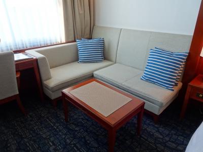 門司港駅から徒歩3~4分のところにあるホテルです。プレミア海峡デラックスツインルームに2泊しました。客室は比較的広く、快適に過ごせます。大きなソファでリラックスできました♪。部屋からの眺望は関門海峡!。関門橋や下関側が見渡せます!。バスルームも洗い場付き、トイレは独立と使用しやすかったです。門司港、下関、どちらの観光にも便利で、とても立地の良いホテルです。スタッフの丁寧に対応していただけて、快適に過ごせました。朝食では、スパークリングワインが提供されており、朝から優雅な気分にさせていただけますよ!。また、名物焼きカレーもありました!。門司港へ行った時は、ぜひまた宿泊したいです!