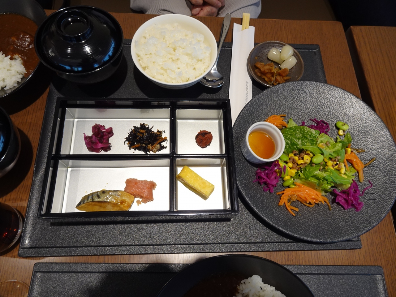 羽田空港国際線サクララウンジは約3年ぶり。久々の訪問になりました。出国後、少し離れたところにあります。食事はオーダー制になっており、直接オーダーするか、モバイルオーダーができます。JALビーフカレーは相変わらず美味しく、他には牛丼、和御膳、パスタなどもありますよ。綺麗に盛り付けられており、より美味しく感じます♪。ちなみにドリンクはセルフです。午前中に訪れましたが、ダイニングエリアは混雑していますが、奥の方のエリアは広く寛げます。