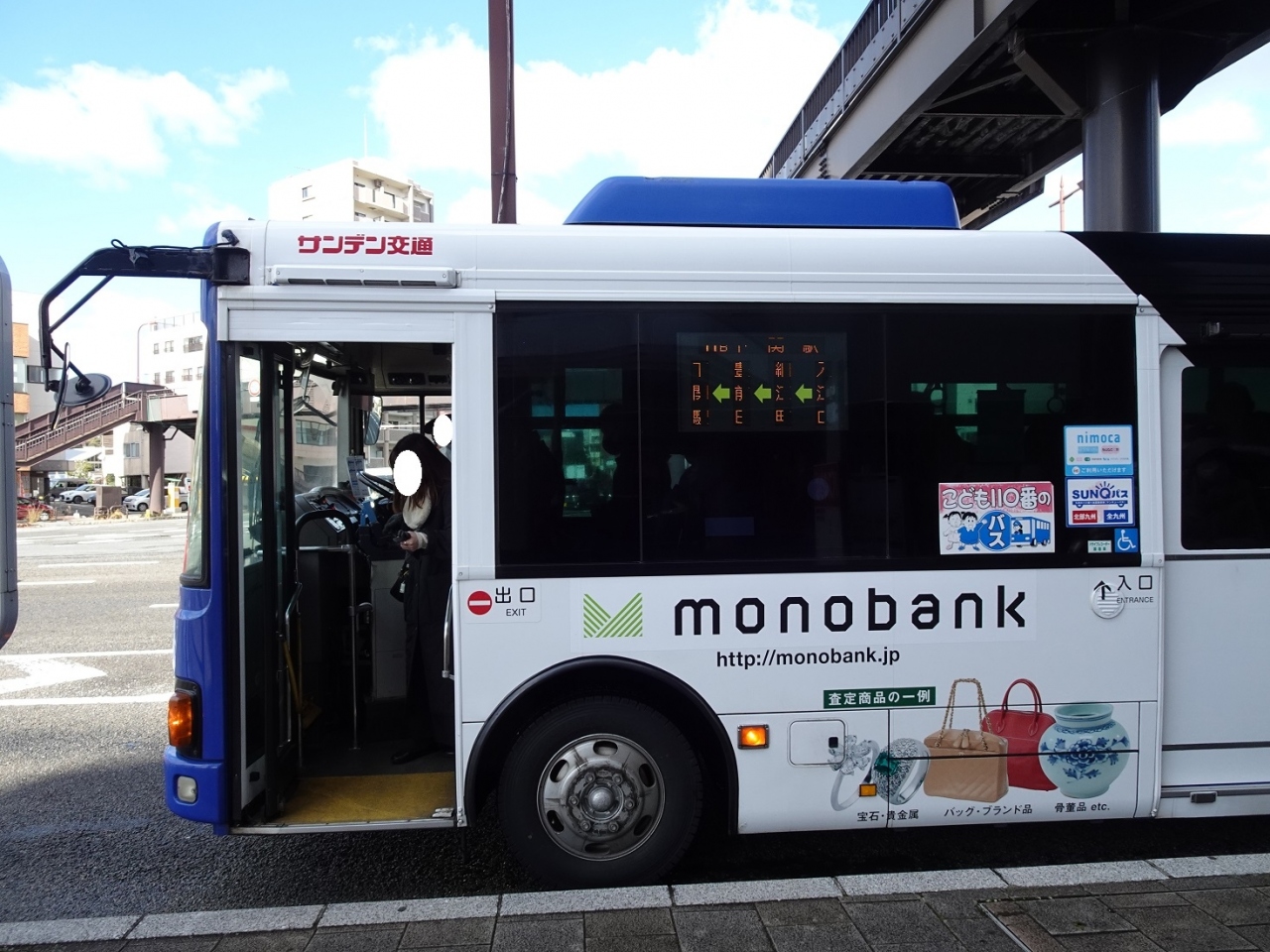 下関市内を走っている路線バスです。私は、関門海峡グローバルきっぷを購入しており、サンデンバスは「みもすそ川」から「唐戸」までの乗車券が付いていました。関門海峡グローバルきっぷで、潮風号、サンデンバス、関門汽船(下関唐戸ー門司港)の乗車券が各1回分利用できます。関門トンネル人道口(下関側)からすぐの所にバス停があり、唐戸まで10分ほど。本数が少ないのですが、待っている間はみもすそ川公園を散策したりできるので、待ち時間は気になりませんでした。ただ、乗車人数が多く、バス内はとても混雑していました。