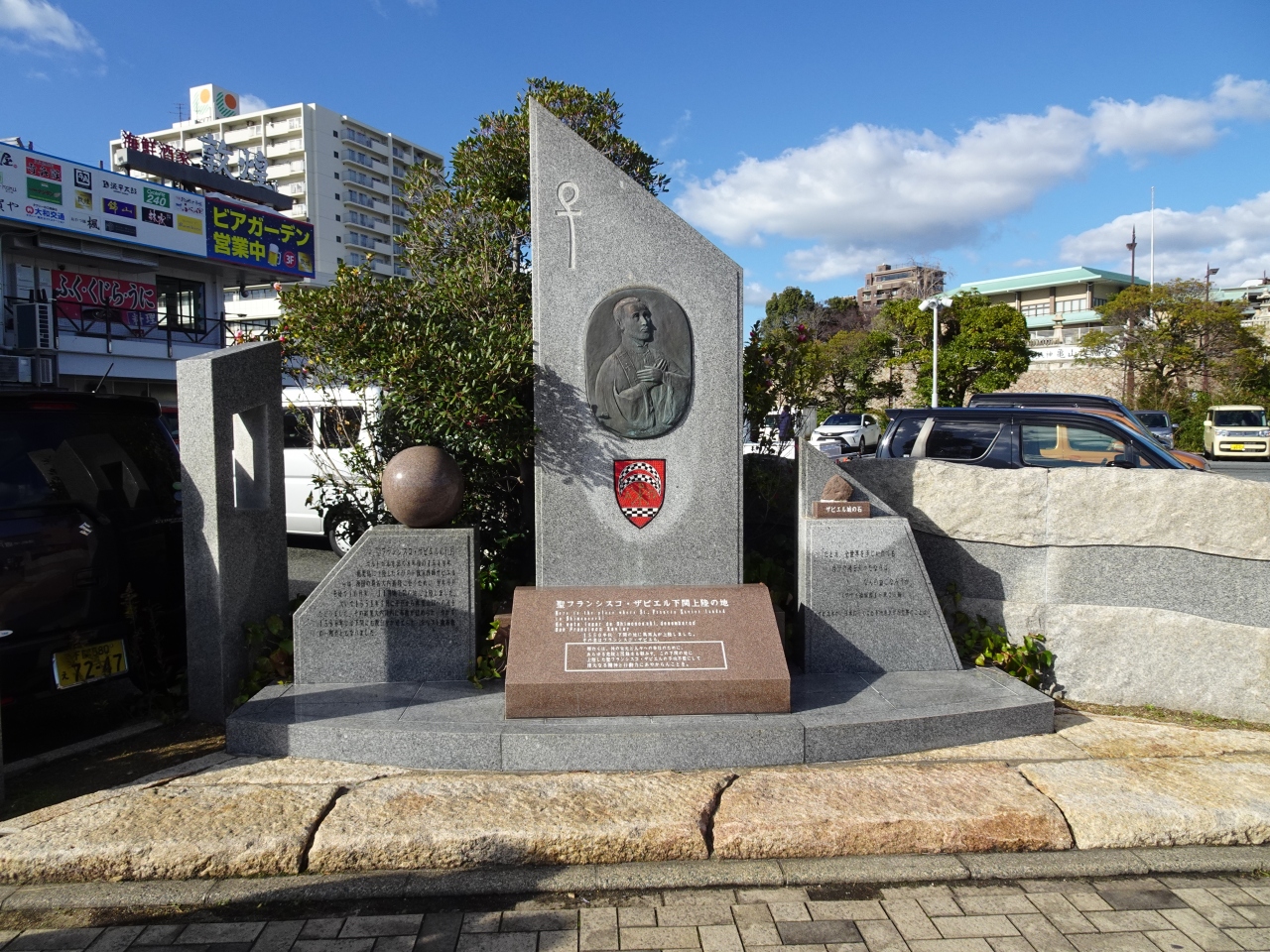カモンワーフから唐戸市場へ向けて歩いている(ボードウォーク)途中に「聖フランシスコザビエル下関上陸の地」の石碑を見つけました。1550年秋、下関に上陸しました。来日450年を記念して、こちらの碑が建立されたようです。下関とフランシスコザビエルは私の中では全く結びついておらず、勉強になりました。ぜひ、見つけてみてくださいねー。