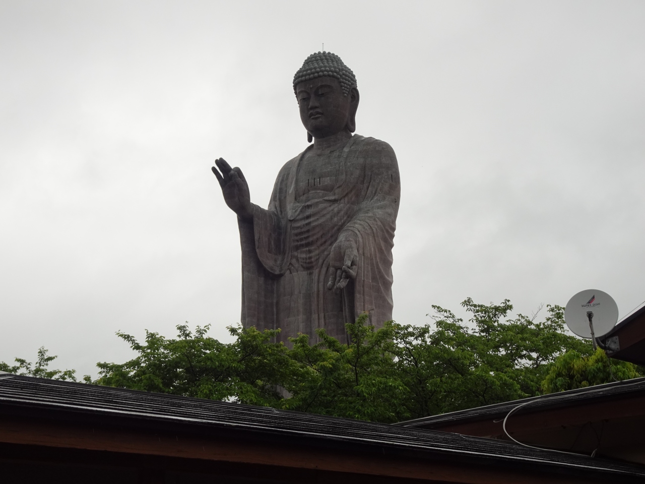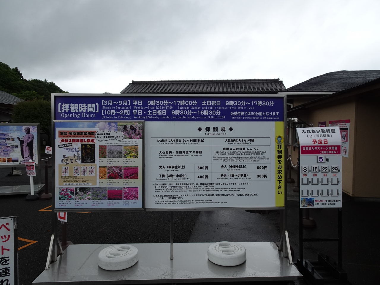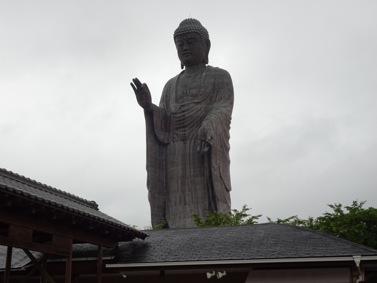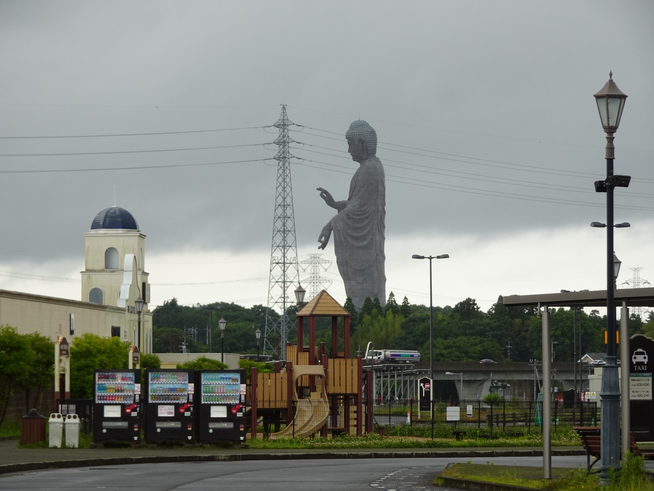 牛久大仏は高さ120m。ギネス世界記録で最も高い銅製仏像として認定されているようです。あみプレミアムアウトレットへ行ったときに、その姿を見ました!。とにかく大きく、待ちを見守ってくれています!!。胎内に入ることもできますよ!。拝観料は庭園と大仏胎内に入るときは800円、庭園だけの場合は500円です。駐車場は無料です。大きな駐車場です。訪れた時は、平日で雨だったので、あまり観光客はいませんでした。入口付近には仲見世があったり、レストランがあったりしましたが、とても閑散としていました。牛久大仏は想像以上に大きく存在感があるので、ぜひ実際に見てくださいね!。