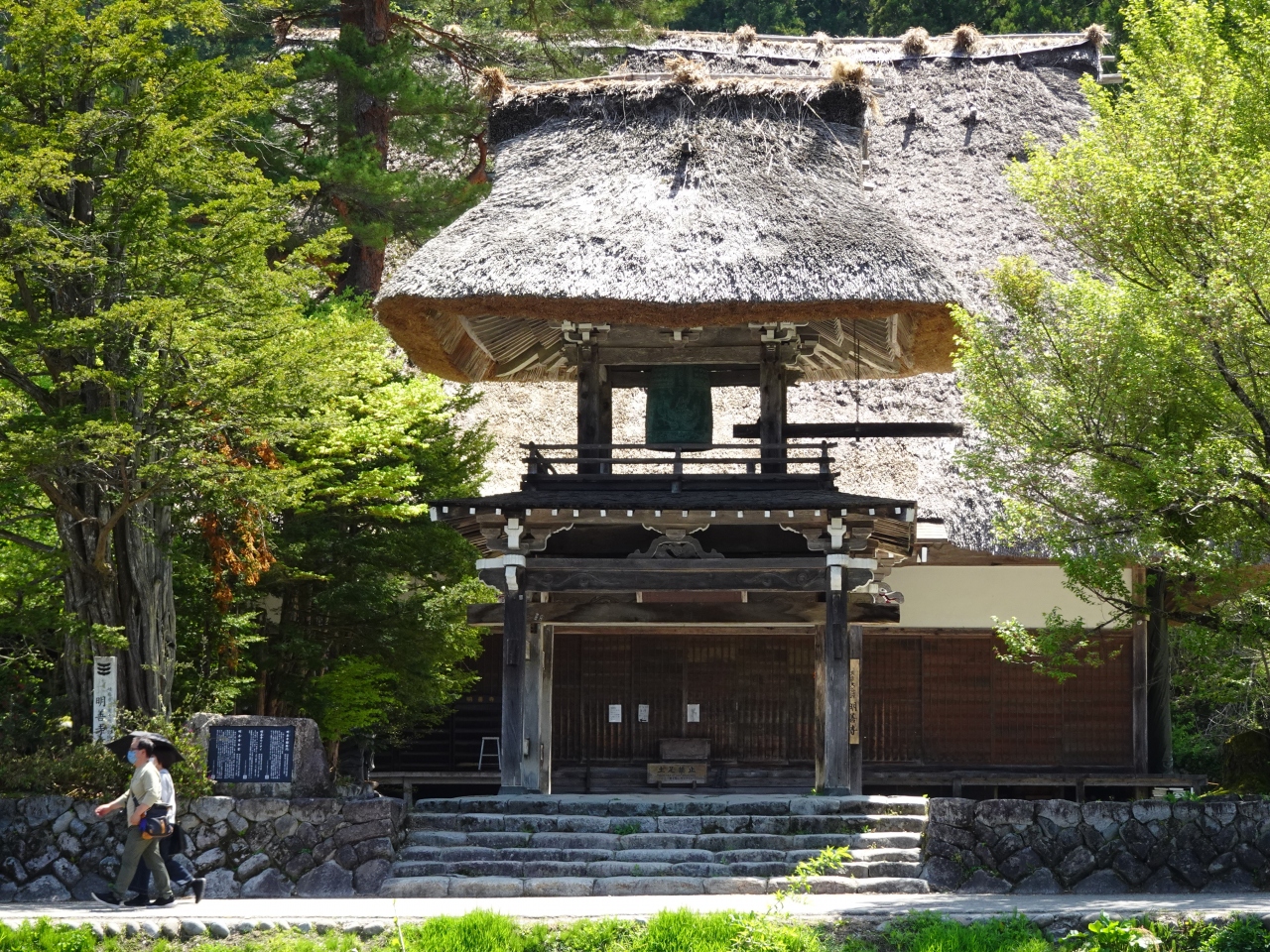 今から約200年前に3年かけて完成された庫裡。5階建ての合掌造りで、白川郷の合掌造りでは最大です。居間には囲炉裏があり、火種を残すため、一日中燃やされています。訪れた時も燃えており、昔ながらの生活を感じ取ることができました。庫裡、鐘楼門、本堂すべてが合掌造りです。内部見学は大人400円です。見ごたえがありますよ!。