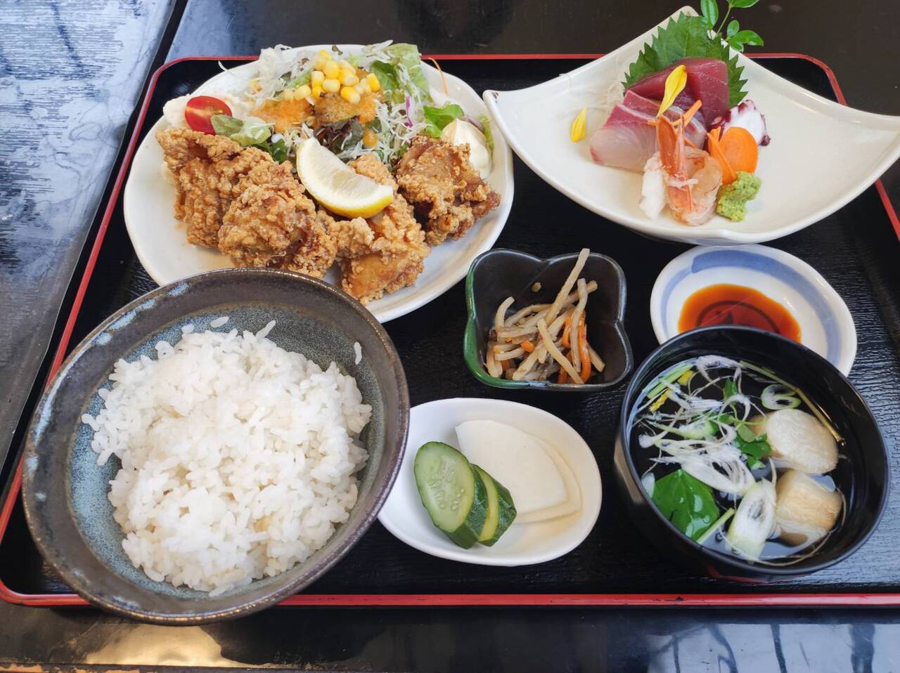 北小金駅から徒歩5分ちょっとの所にありました。本土寺の参道です。私は車で訪れましたが、お店の横に駐車場もあります。ランチで利用しました。ランチメニューが豊富にあります。どのメニューもボリュームたっぷり。メニューに写真が付いているので、どんな料理か分かりやすいです。今回は上にぎりとサラダセット、若どりの唐揚げと刺身セットを注文。上にぎりは10貫で、マグロ、ウニ、ネギトロ軍艦、海老、カニ、真鯛などでした。若どりの唐揚げは4つ。大きな唐揚げでそれだけでもボリュームが凄いのに、刺身もついて1000円。とてもリーズナブルです。どの料理も美味しくいただきました。本土寺へ行かれた時に、おすすめのお店です。