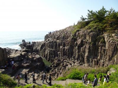 福井の観光スポットの一つが東尋坊。ついつい、火曜サスペンス劇場を思い出してしまう。。。実際に行ってみると、やはり迫力がすごい!。高所恐怖症の私には、ゴツゴツした岩の上を歩いていくことはできませんでした。遠くから見るのが精一杯です。それでも、断崖絶壁に荒波が打ちつける様子は見られます!。
