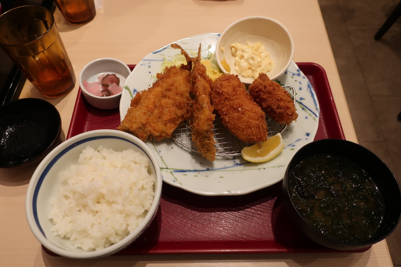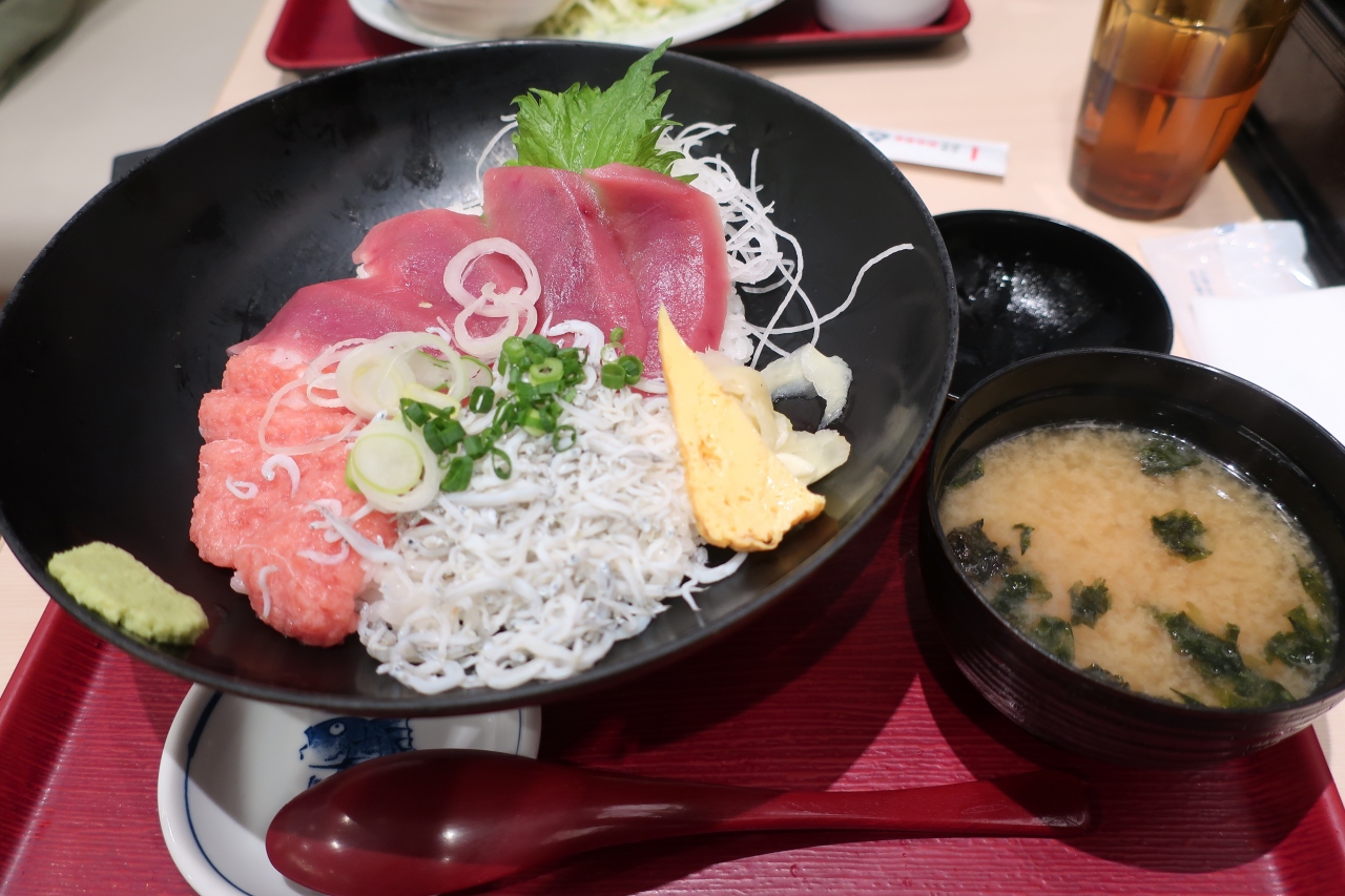 プレナ幕張2階に入っています。ランチで利用しました。海鮮がメインの食堂で、特に海鮮丼、定食は種類豊富です。ねぎとろ鉄火丼と魚河岸フライ定食を注文。ねぎとろ鉄火丼は、ネタが新鮮で、美味しくいただきました。どんぶりの大きさに驚きますが、ぺろりと食べてしまいました(笑)。フライは、エビフライが売れきれのため、カキフライに変更ということはありましたが、どれも美味しくいただきました。リーズナブルな価格で海鮮がいただけますよ!。