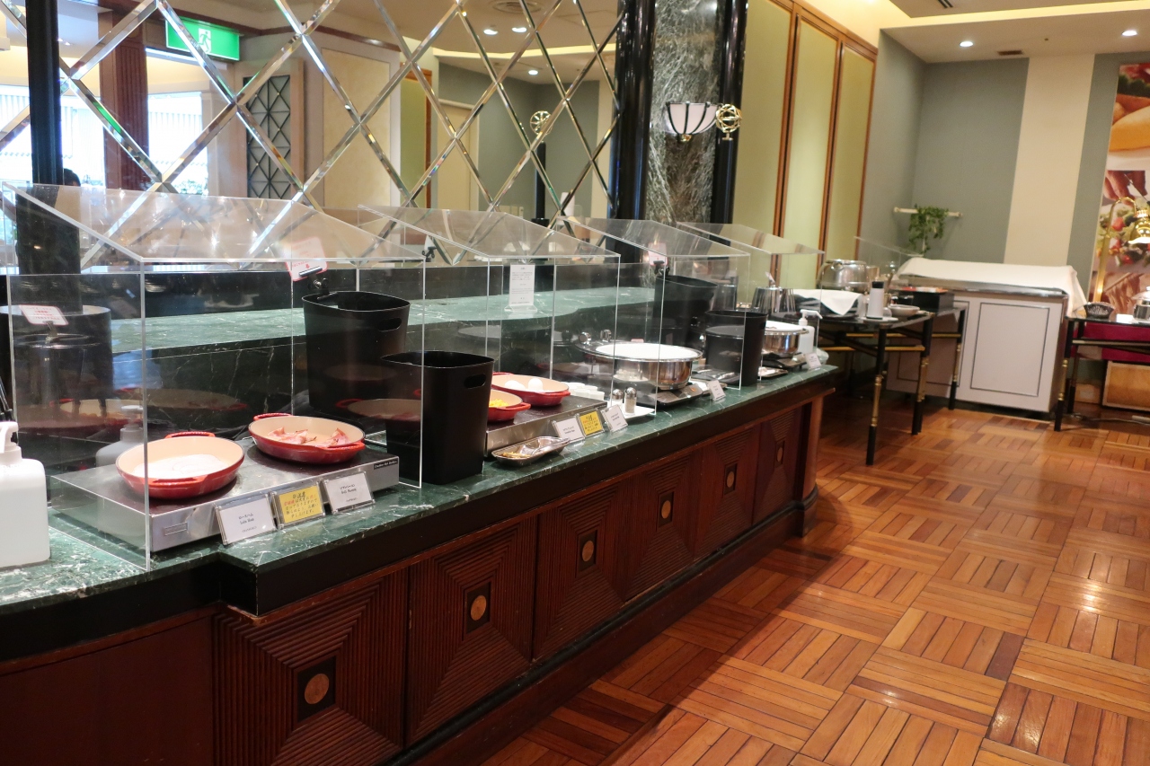 2度目の利用です。今回はディナーで利用しました。ディナービュッフェが催されておりました。フードは中国料理がメインですが、お寿司、ローストビーフ、スイーツと魅力的なものが多かったです。海老のチリソースや焼きそば、黒酢酢豚などが美味しかったです。スイーツでは、スーパーメロンショートケーキなど、ニューオータニのスイーツビュッフェのメニューが多く、楽しめました。コロナ対策もしっかりしていて、安心して利用できますよ。また、機会があれば伺いたいです♪。